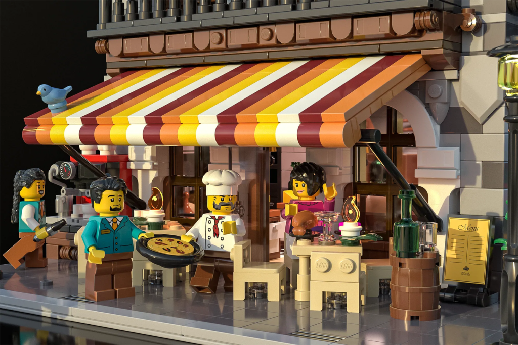 Während keiner seiner anderen Vorschläge grünes Licht bekam, hofft er, dass sein 3,350-teiliges Mediterranean Restaurant endlich wieder diese Nuss knackt. Aber es steht ihm ein harter Kampf bevor: die LEGO Ideas Das Team hat bisher nur ein modulares Gebäude genehmigt und selbst dann 21353 Der Botanische GartenDie Laternenpfähle und Bürgersteige wurden zugunsten eines Außengartens ersetzt.