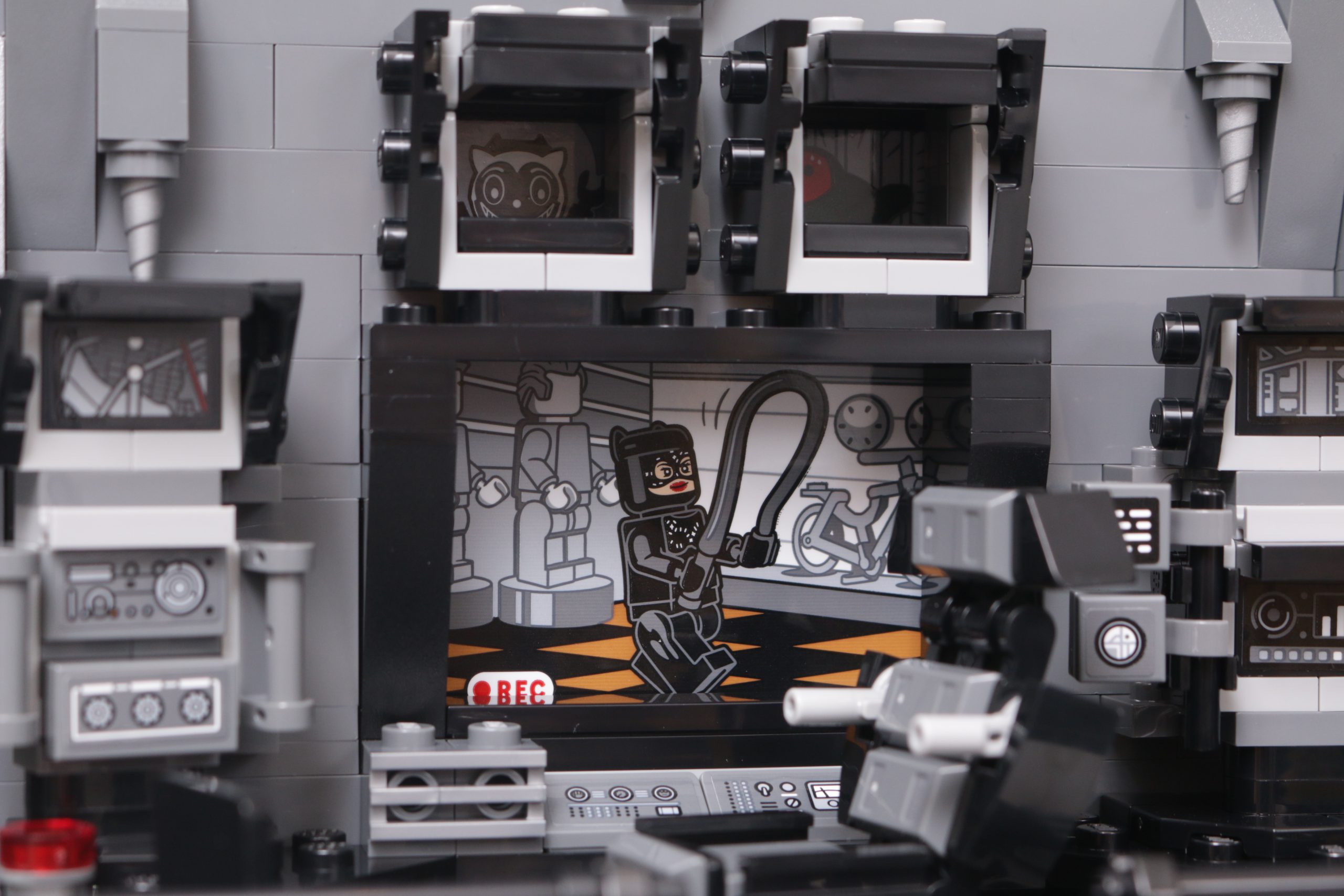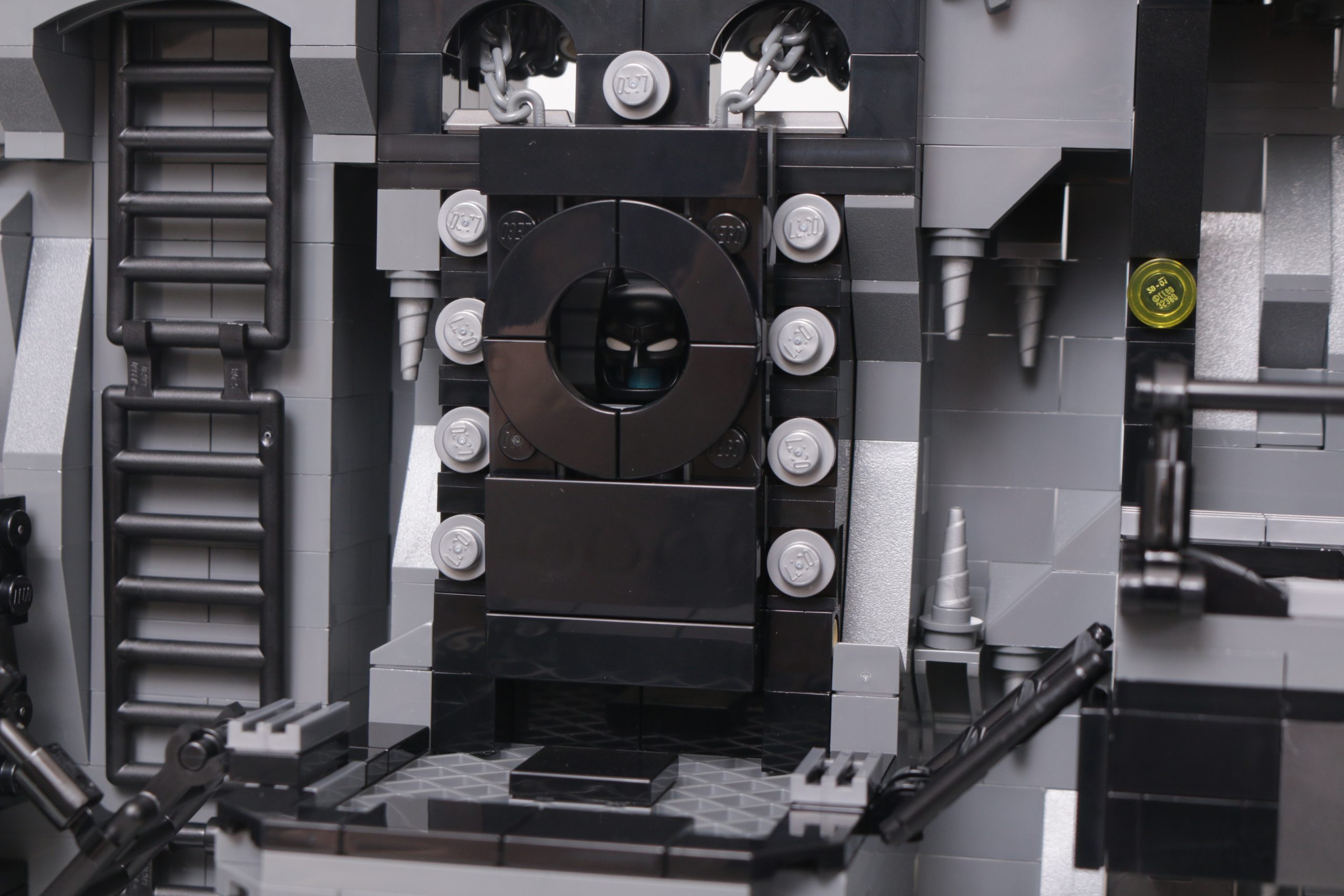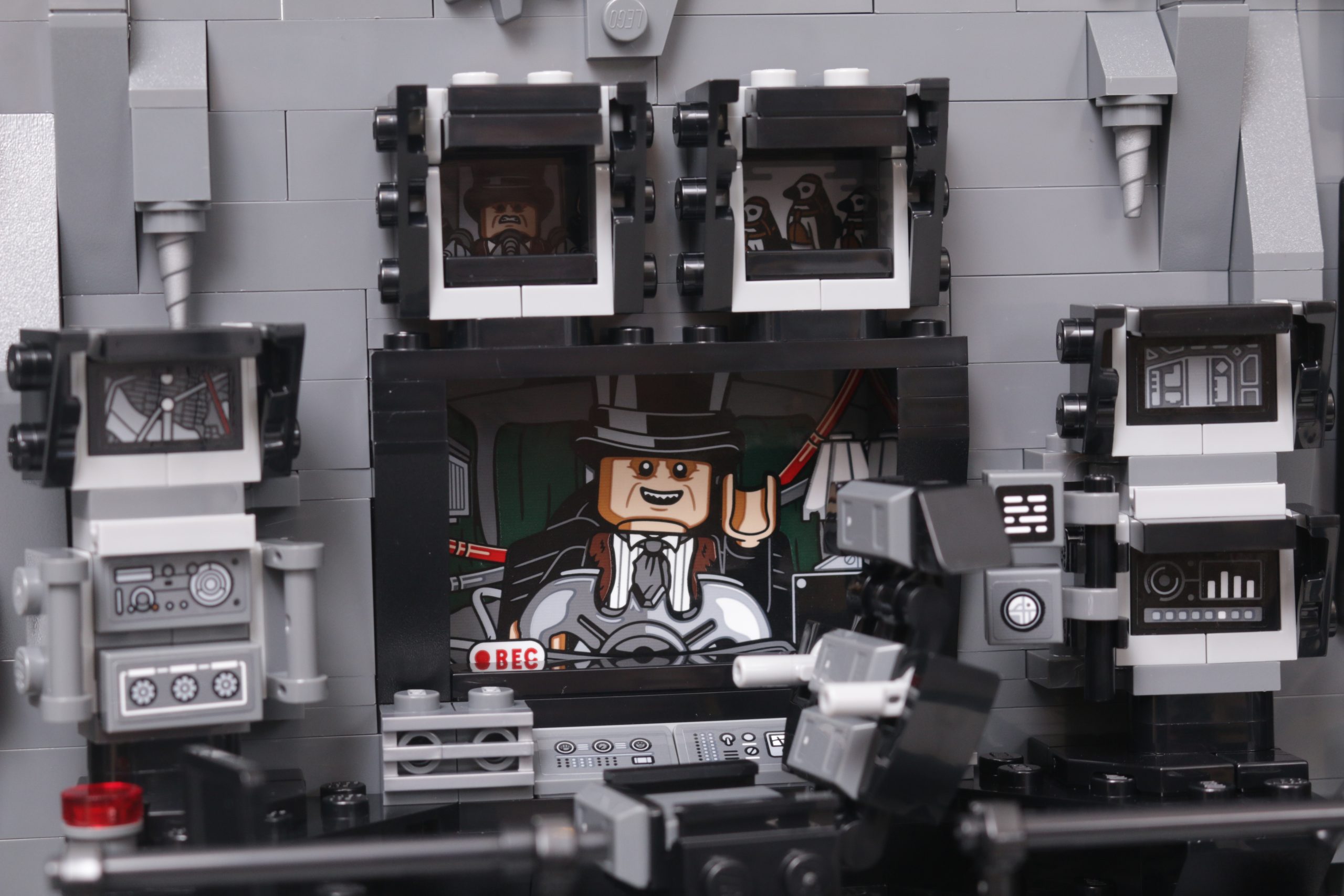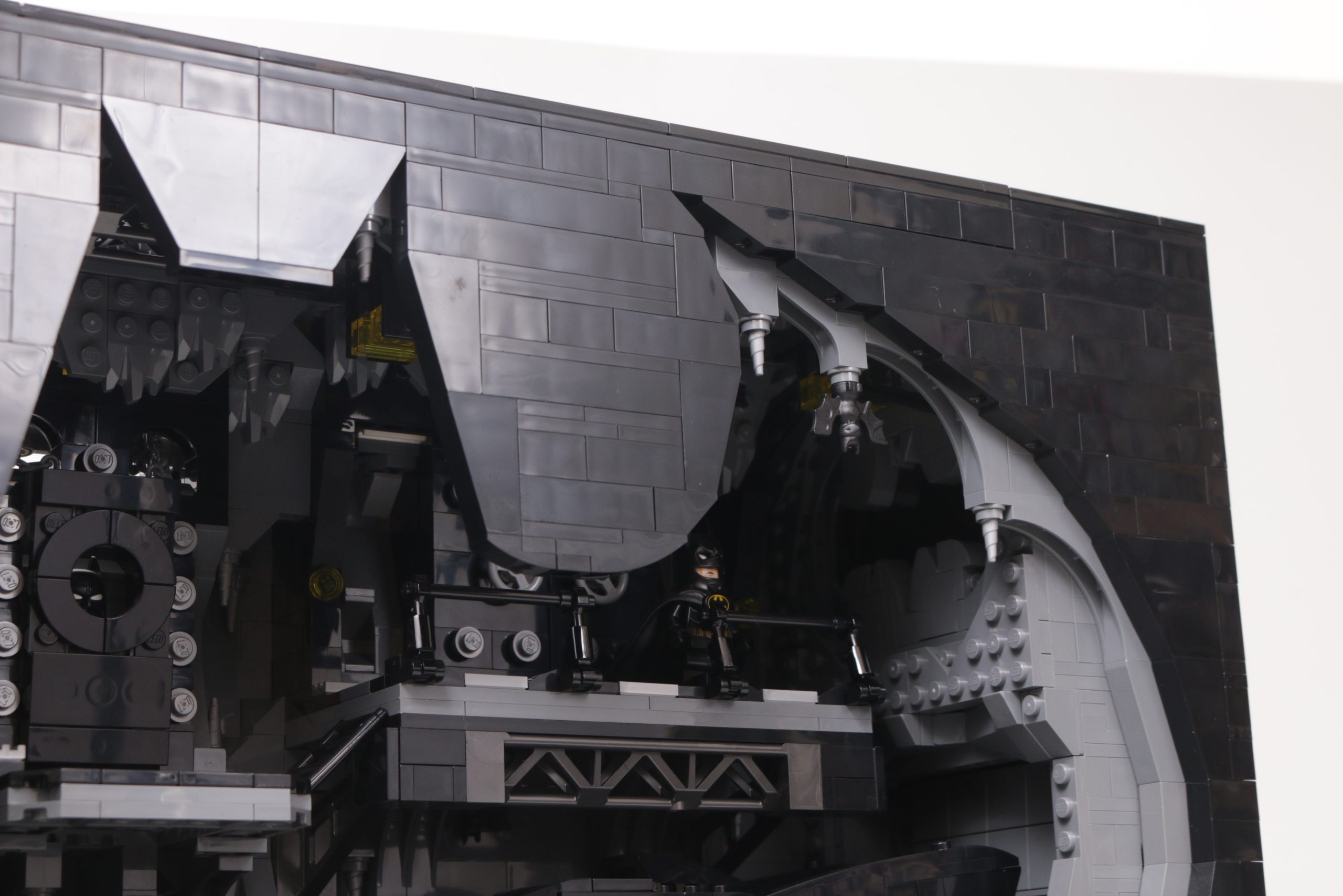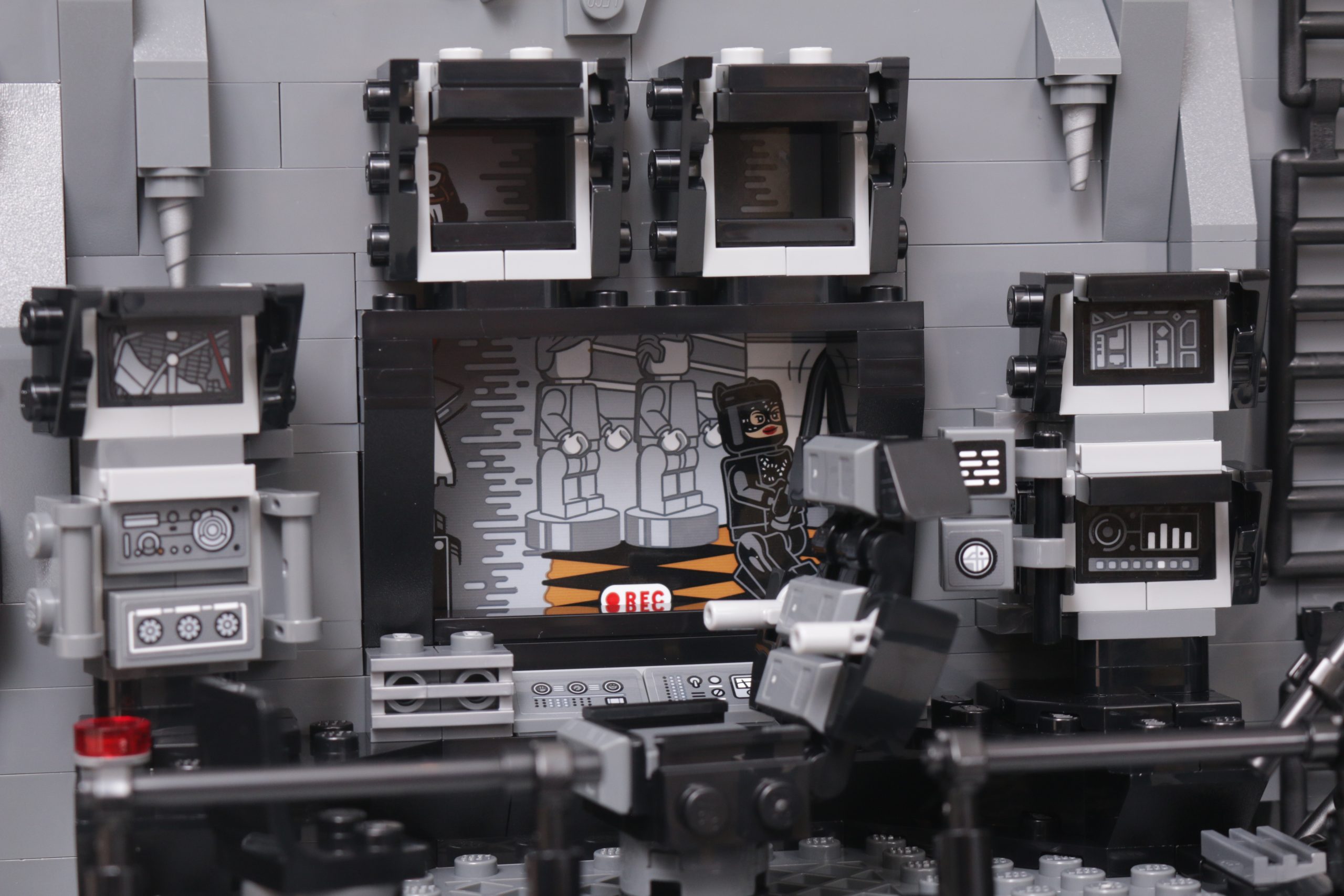 Wie bereits erwähnt, ist das Set voller Details in der Bathöhle und bietet glaubwürdige kleine LEGO-Versionen des Bat-Computers, des Batsuit-Stauraums (Bat-Garderobe?) und des Waffenlagers sowie eine große, lange Plattform für das mitgelieferte Batmobil. Jeder Bereich ist ansprechend gestaltet und meistert die Herausforderung, nur in zwei Farben zu bauen, mit Bravour – kurz gesagt, man bemerkt keine kreativen Kompromisse in der monochromen Natur des fertigen Modells, sondern nur die gotischen Tim-Burton-Vibes, die ein solches Bauwerk vermitteln sollte.