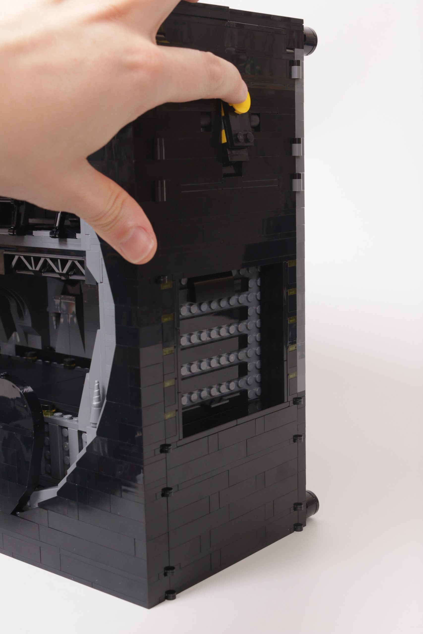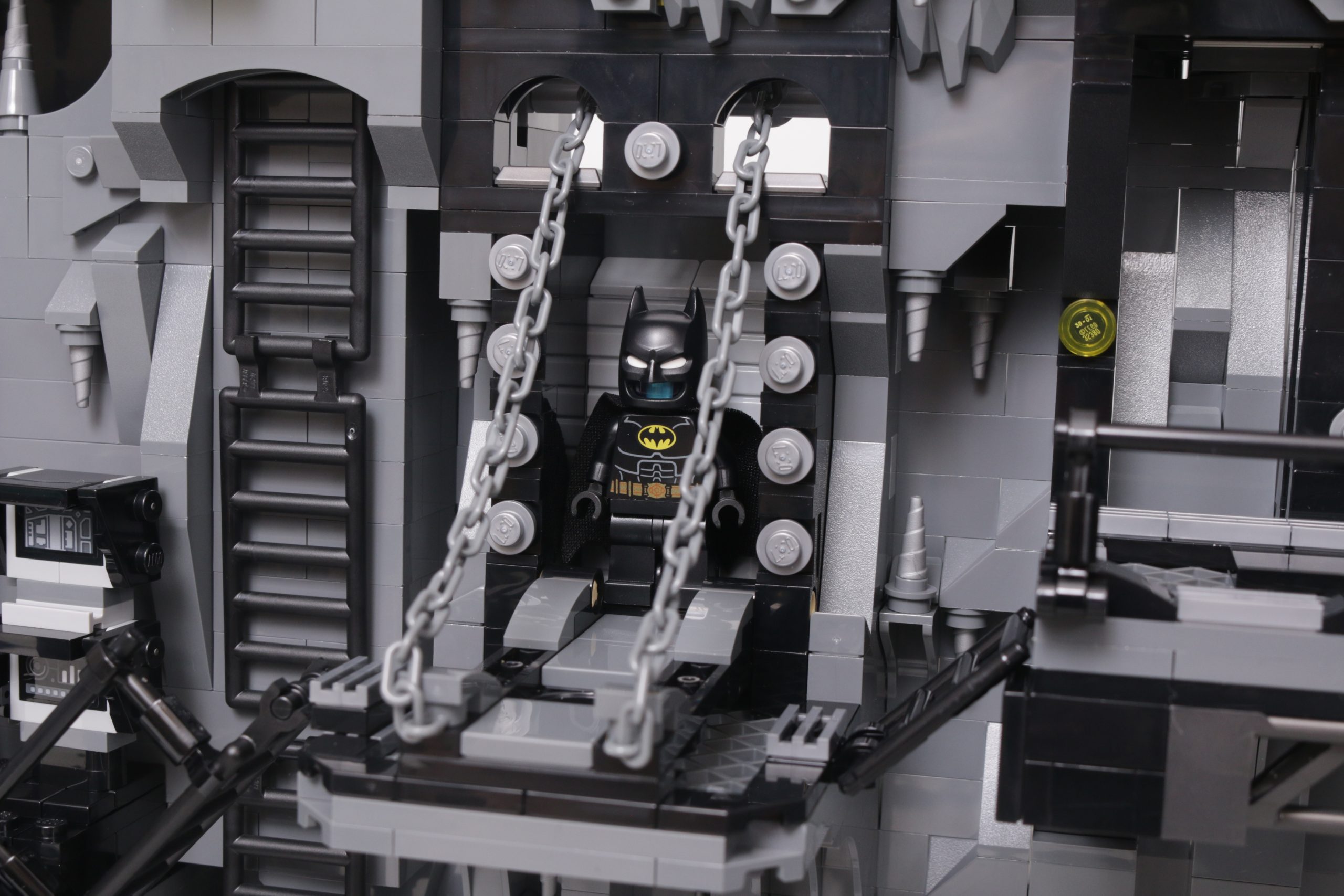 Jeder Bereich der Batcave verfügt außerdem über eine eigene Spielfunktion (auch wenn dies ein Set für Erwachsene ist, nennen wir es beim Namen – wir werden alle, unabhängig vom Alter, an den Knöpfen an der Rückseite der Box drehen), mit der sich Bruce Waynes schicker Sessel drehen, die Tür zum Batsuit auf- und zuklappen, ein Licht einschalten lässt, um ihn zu beleuchten, der Waffenausstellungsbereich öffnen und schließen und die Batmobil-Plattform zwischen dem Rest der Batcave und dem vorderen Fenster der Box ausklappen lässt. Als Kombination aus greifbaren Momenten im fertigen Modell bieten sie Baumeistern jeden Alters einen guten Mehrwert, sowohl hinsichtlich der Spielbarkeit für diejenigen, die ein eher praktisches, traditionelles LEGO-Erlebnis suchen, als auch für diejenigen, die etwas zum Ausstellen bevorzugen, aber dennoch ein bisschen neuartige Interaktivität bieten möchten.