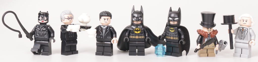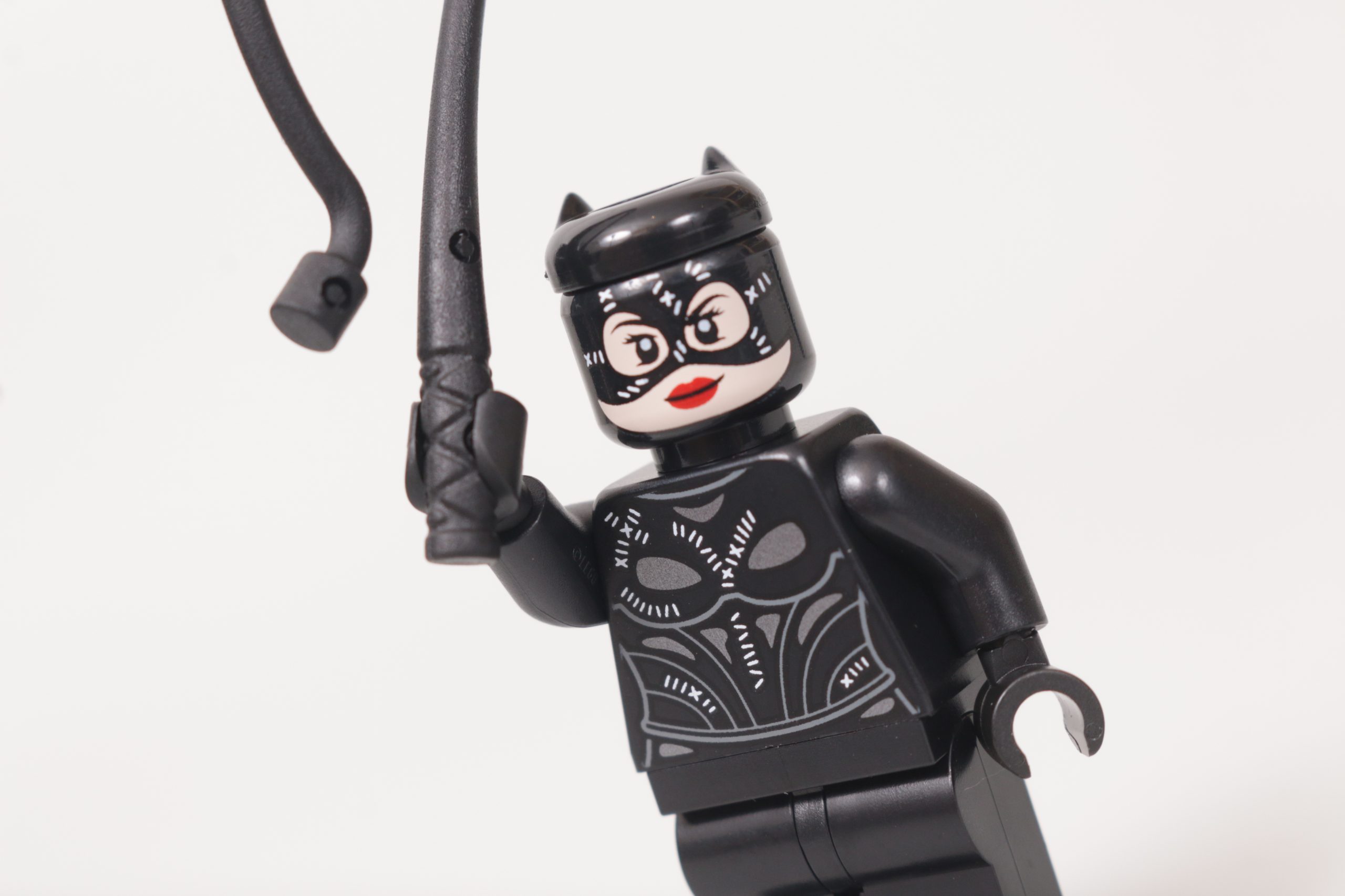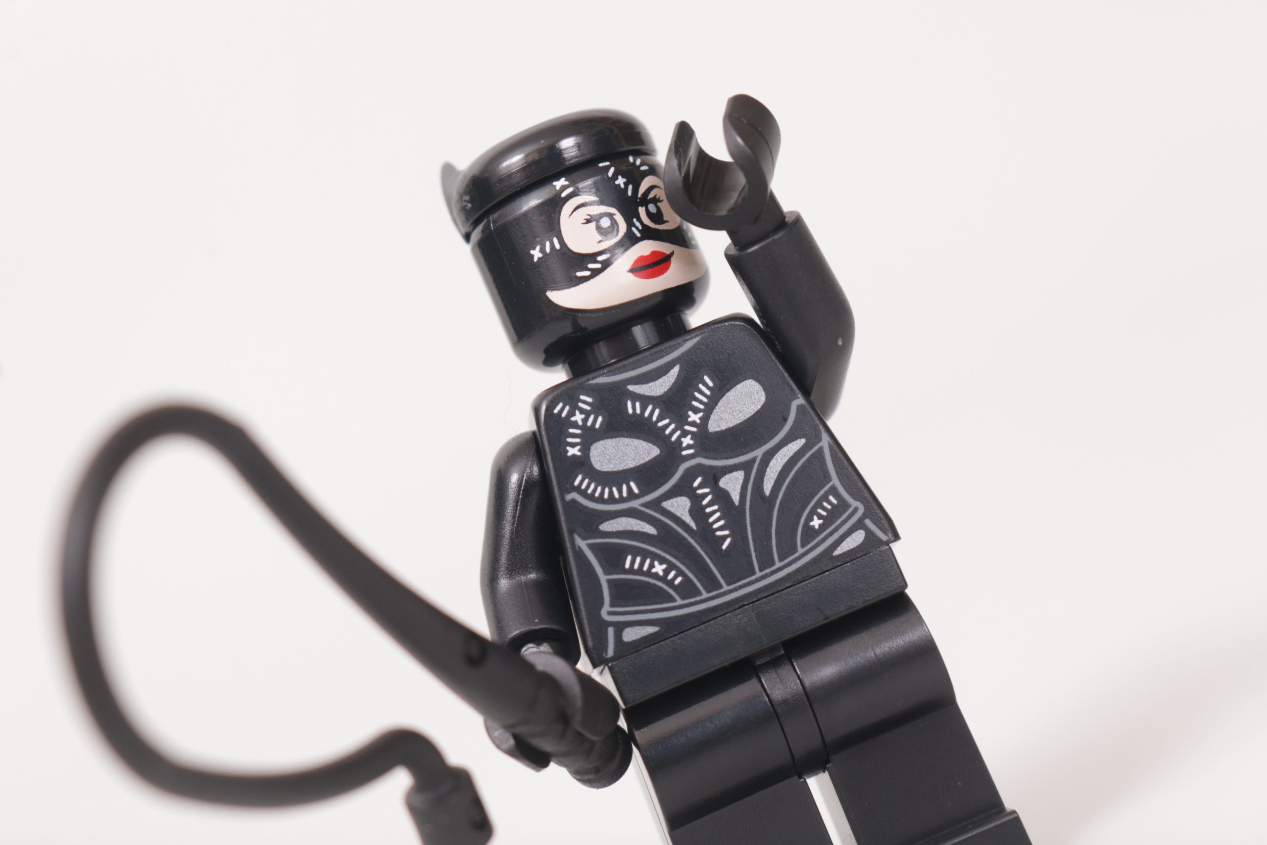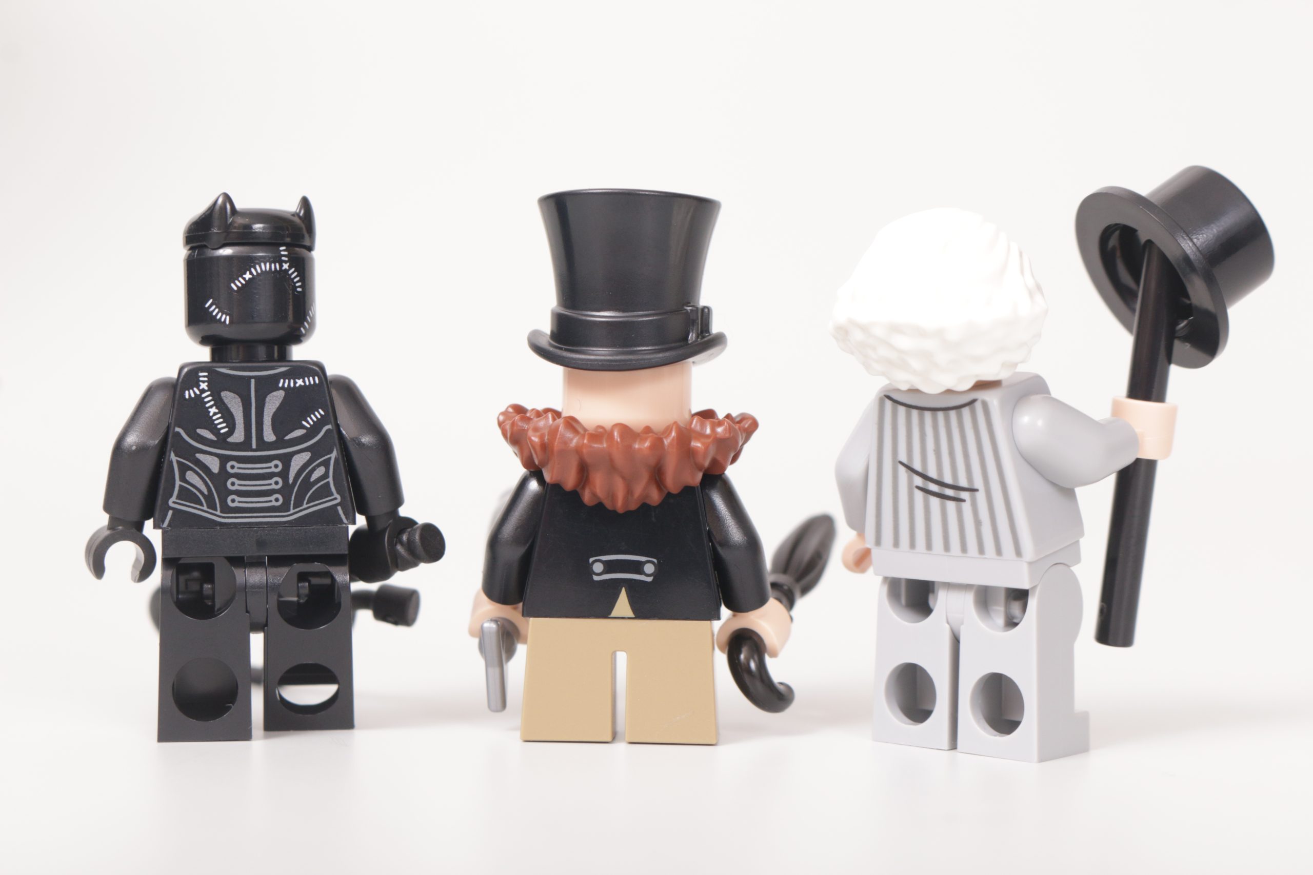 Pinguin und Catwoman sind jedoch die Punkte, an denen die Minifiguren-Auswahl des Sets zu enttäuschen beginnt, und zwar wegen der Details. Catwomans Kopf- und Rumpfdesign ist perfekt, aber das Fehlen eines Beinaufdrucks in einem so teuren LEGO-Set ist lächerlich und lässt die Minifigur halbfertig wirken. Der Pinguin/Oswald Cobblepot hingegen hat einen tollen und filmgetreuen Oberkörper, doch sein Gesichtsaufdruck und sein Kopfteil haben die falsche Farbe, mit einem Ausdruck/Design, das eher jede Version der Figur als Danny DeVitos ikonische Version sein könnte, während der mitgelieferte Zylinder der dumm-unproportionale ist.