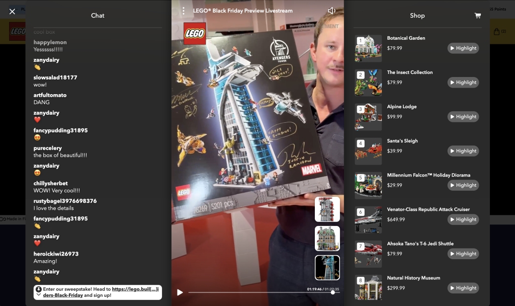 Der Stream endete mit der Enthüllung eines einzigartigen Gewinnspiels im Insiders Rewards Center. Fans in den USA und Kanada (außer Quebec) können jetzt teilnehmen ein Exemplar gewinnen of 76269 Rächerturm signiert von den Designern Mark Stafford, Justin Ramsden und Mark Tranter. Die einzigartige Box enthält ihre Unterschriften und andere Kritzeleien. Der Gewinner wird am 29. November kontaktiert.