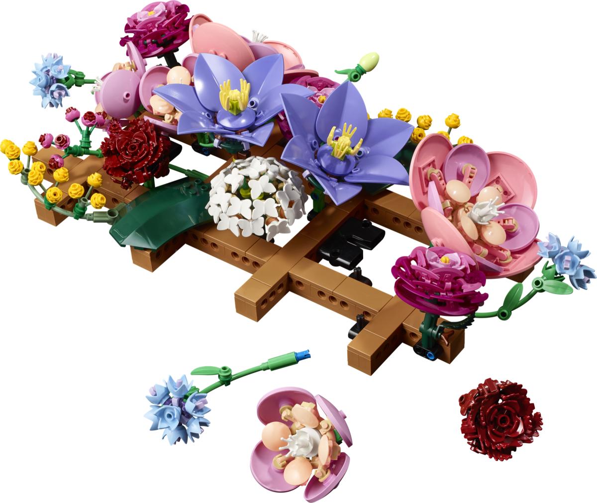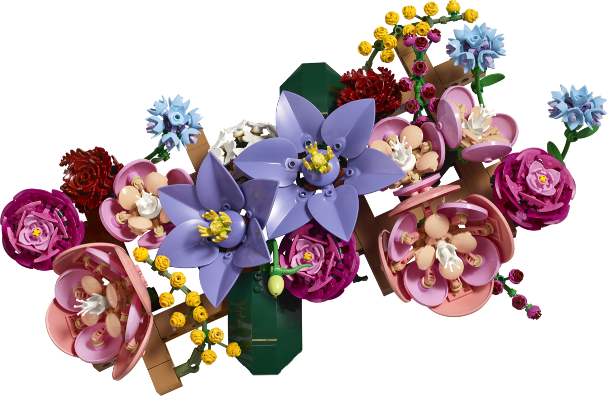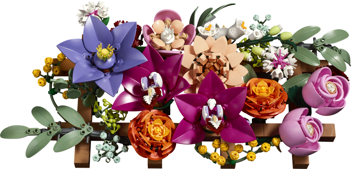 Nach der Erstellung können Sie es anzeigen 11503 Blumenwand entweder im Hoch- oder Querformat. Sie könnten auch zwei Kopien anfertigen. LEGO Botanicals Ziel ist es, ein größeres Blumenarrangement zu schaffen und dieses mit früheren LEGO-Sets zu erweitern. Botanicals Blumensträuße, wie unten abgebildet.