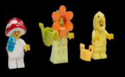 Es gibt ein Pilzkostüm mit Vogelmotiv, ein Blumenkostüm im Kleid und eine Minifigur im Kükenkostüm. Ein Veröffentlichungsdatum für diese Elemente ist noch nicht bekannt, aber es scheint sich um eine Vorschau auf zukünftige „Baue deine Minifigur“-Teile zu handeln.
