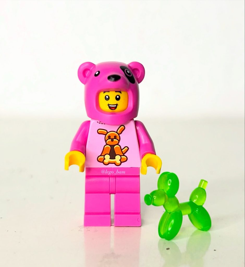Außerdem ist jetzt eine neue Minifigur als Hundefan erhältlich, mit einem exklusiv bedruckten Torso, der einen Ballonhund darstellt, und einem passenden Teil, das jetzt auch in den Türmen erhältlich ist. Die Minifigur ist ähnlich kostümiert wie die dunkelorangefarbene Figur und hat ebenfalls ein bedrucktes Hutelement.