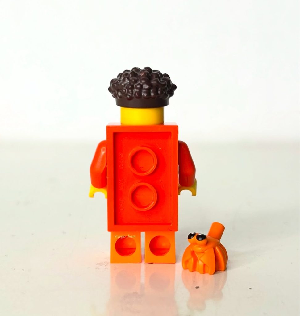 Eine neue Minifigur im Ziegelkostüm ist jetzt erhältlich, wobei das Kostüm in der neueren rötlich-orangen Farbe nachgebildet wurde. Den Türmen wurde außerdem der Körper eines Einsiedlerkrebses hinzugefügt, was darauf hindeutet, dass das Thema dieser Minifigur einfach orange ist.