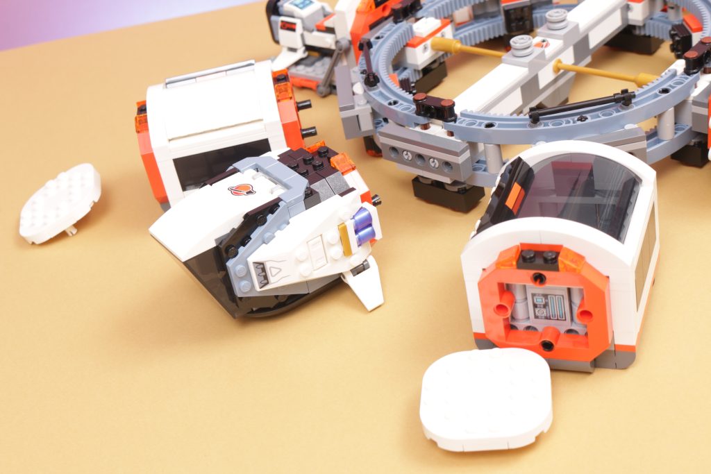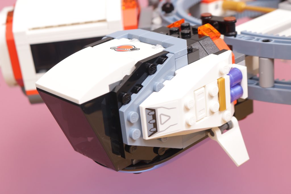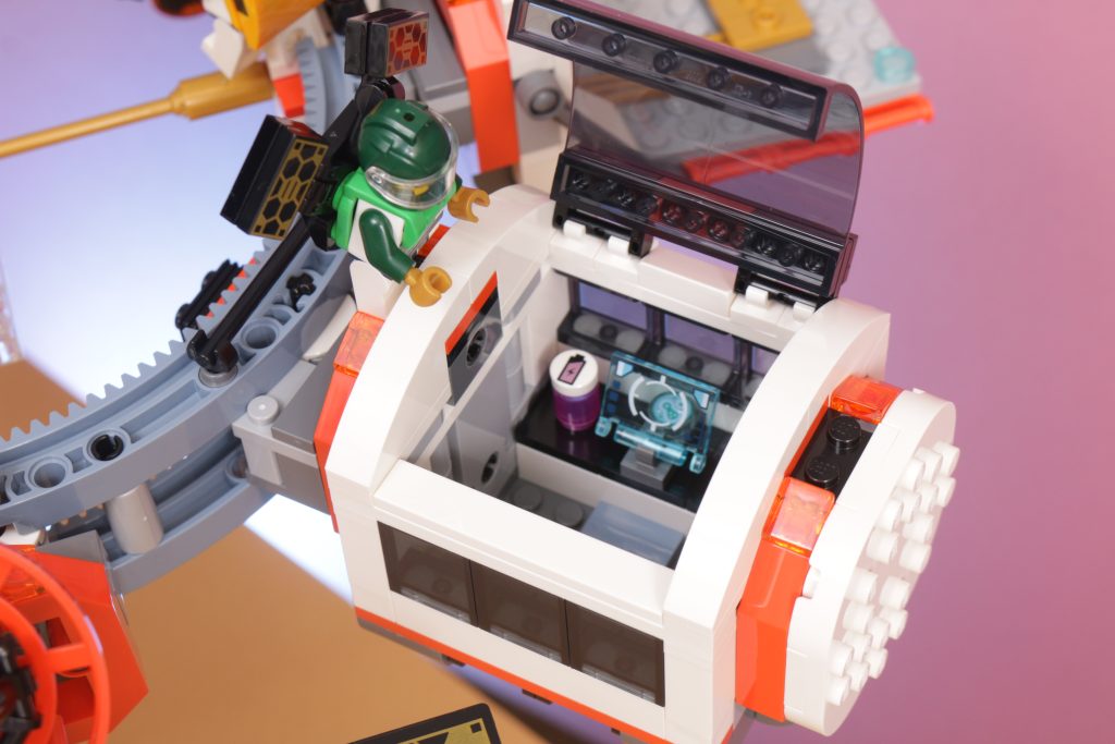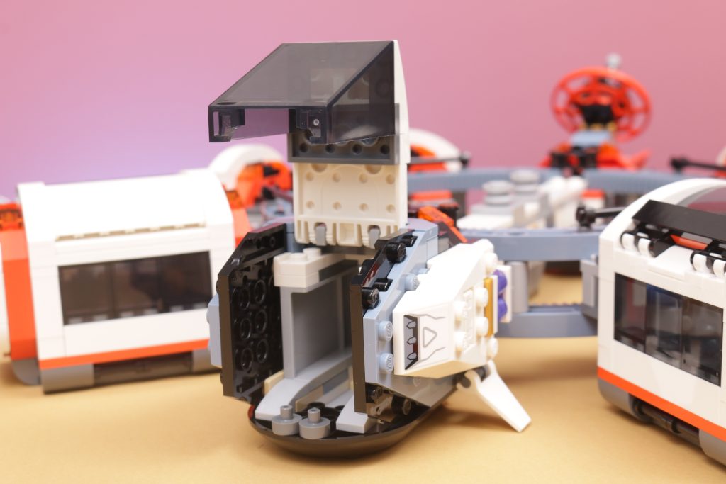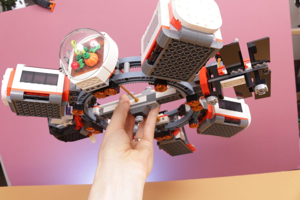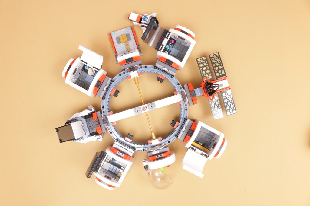 Tatsächlich finden sich in jedem Modul Details des Lebens im Weltraum, von den Mannschaftsquartieren über den Anbau von Nahrungsmitteln bis hin zu Forschung und Arbeit – viele alltägliche Aktivitäten der LEGO Space-Crew werden in einem so interessanten Baukonzept berücksichtigt und gut eingefangen. Dass das Set komplett zerlegt und zu einem raumzugähnlichen Transportsystem wieder zusammengeBauen werden kann, ist unerwartet, bietet aber sicherlich eine Spielebene, die der Station sonst fehlen würde.
