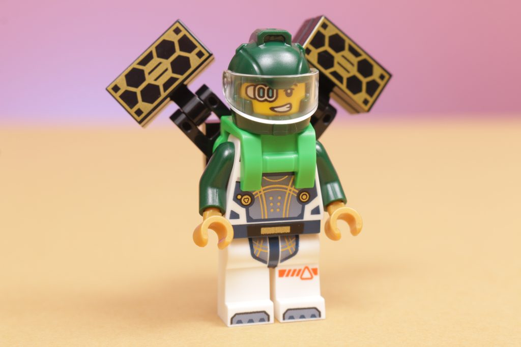 Mit dabei ist ein dunkelgrüner Astronaut mit einzigartigem Gesichtsaufdruck und futuristischer Augenklappe. Neben dem interstellaren Gesichtstattoo, das wir bereits bei einer anderen Figur des Themas gesehen haben, ist es der Sci-Fi-inspirierteste Gesichtsaufdruck im LEGO®-Universum. City Weltraumreichweite und dergleichen, von denen wir hoffen würden, mehr zu sehen, sollte es in diesem Universum eine zweite Welle von Sets geben.