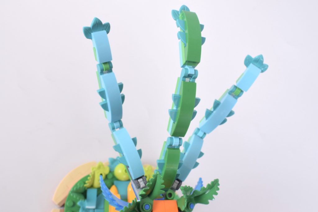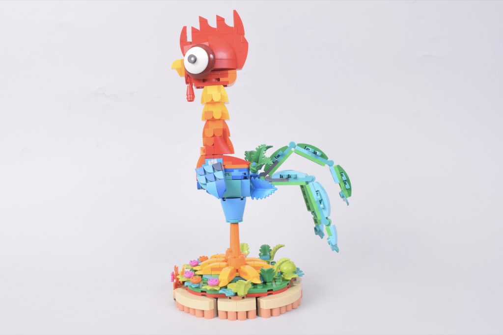 Schwanz und Flügel sind voll beweglich, und die dreizackigen Schwanzfedern lassen sich auf verschiedene Weise aufplustern. Von der Kronenspitze bis zu den (etwas zerbrechlichen) Füßen ist 43272 Heihei nicht nur eine originalgetreue Nachbildung des Vaiana-Hahns, sondern auch ein Set, das man mit jedem Bauvorgang und jedem Blick in die starren Augen des Hahns einfach lieben wird.