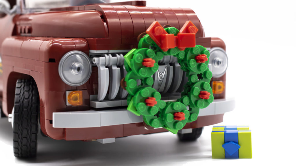 Für den Sommer gibt es frische Milch, Tomaten und Karotten, sowohl orange als auch weiße Sorten (eine erste Erscheinung für letztere). Die Produkte des Herbstes gibt es in Form eines sehr authentischen Korbes mit Kürbissen, und für den Winter gibt es ein kleines Präsent und einen sehr gut gearbeiteten Kranz. Sie verleihen dem Truck einen schönen Hauch von Charakter und helfen auch dabei, eine Geschichte zu erzählen, was eine ziemlich beeindruckende Leistung ist, wenn man bedenkt, dass es sich nur um ein einzelnes Fahrzeug ohne Minifiguren handelt.