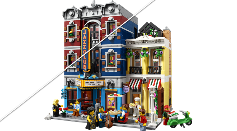 • Siehe LEGO Icons 10312 Jazz Club, aufgereiht mit aktuellen modularen Gebäuden