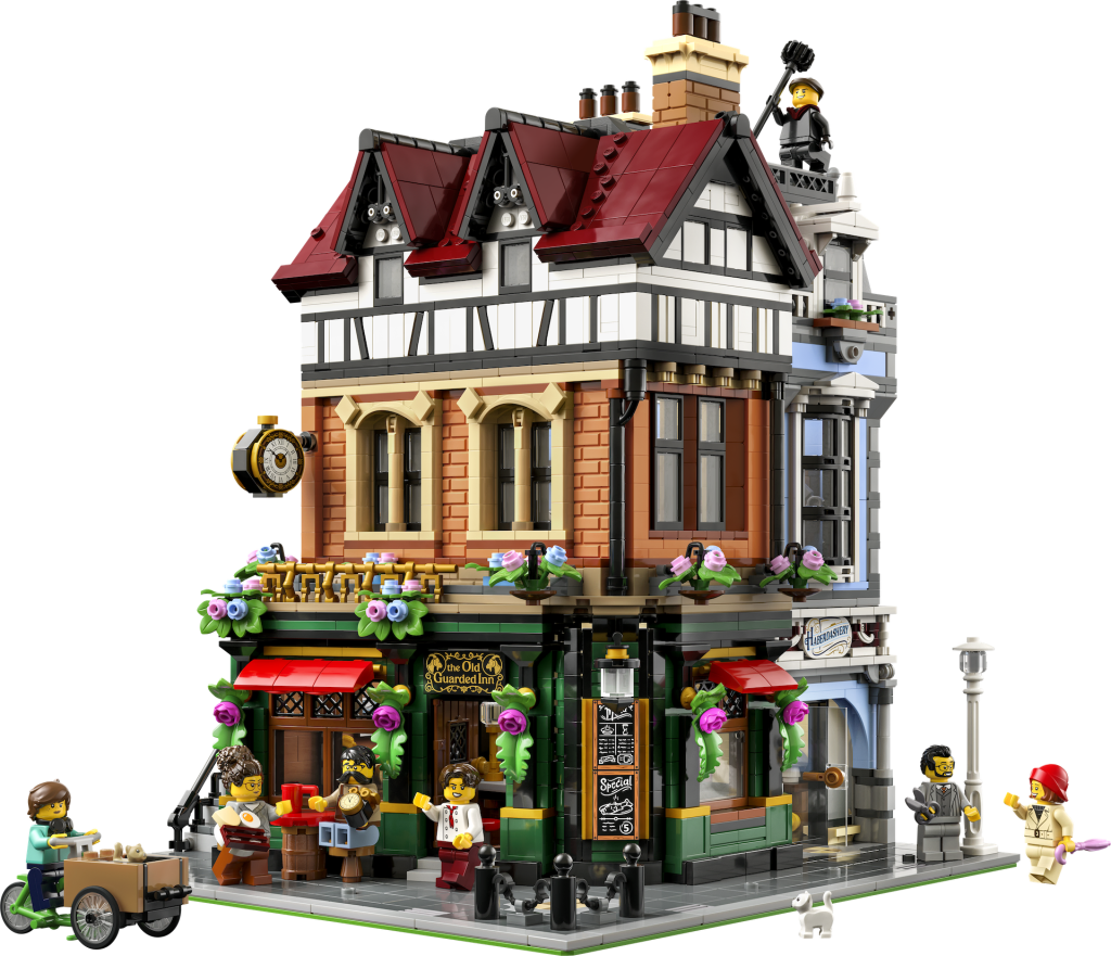 Wie für 10350 Tudor-Ecke selbst? Nun, es ist so britisch wie LEGO Set, wie Sie es noch nie gesehen haben, mit einem Gasthaus (Pub) und einem Kurzwarenladen im Erdgeschoss, einer Uhrmacherwerkstatt im ersten Stock und einer Dachgeschosswohnung im Obergeschoss. In der Box befinden sich sieben Minifiguren, darunter ein Schornsteinfeger – denken Sie daran, dies ist ein sehr britisches LEGO Set – plus eine Bonus-Mannequin, die die LEGO Laut der Gruppe beträgt die Gesamtzahl nun acht.