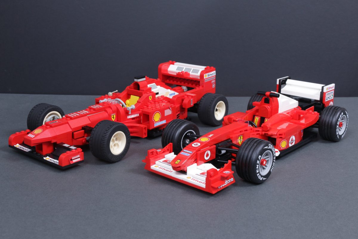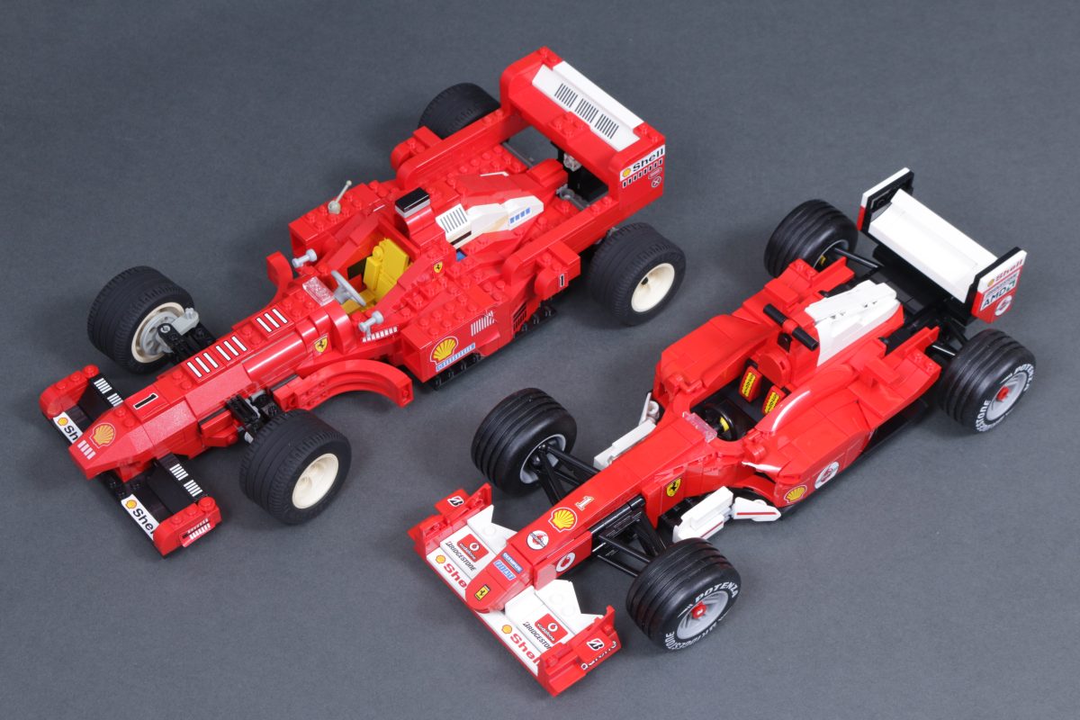 Am Ende des Tages, 11375 Ferrari F2004 & Michael Schumacher Das Set ist eine deutliche Verbesserung gegenüber einem Set, das dieses Jahr 28 Jahre alt wird, aber der Ferrari Formel-1-Rennwagen (2556) kann sich durchaus mit der Neuauflage von 2026 messen. In der Ausstellung ergänzen sich die beiden Sets perfekt und zeigen eindrucksvoll, wie weit sich LEGO® Bauen, Elemente und Techniken in fast drei Jahrzehnten entwickelt haben.