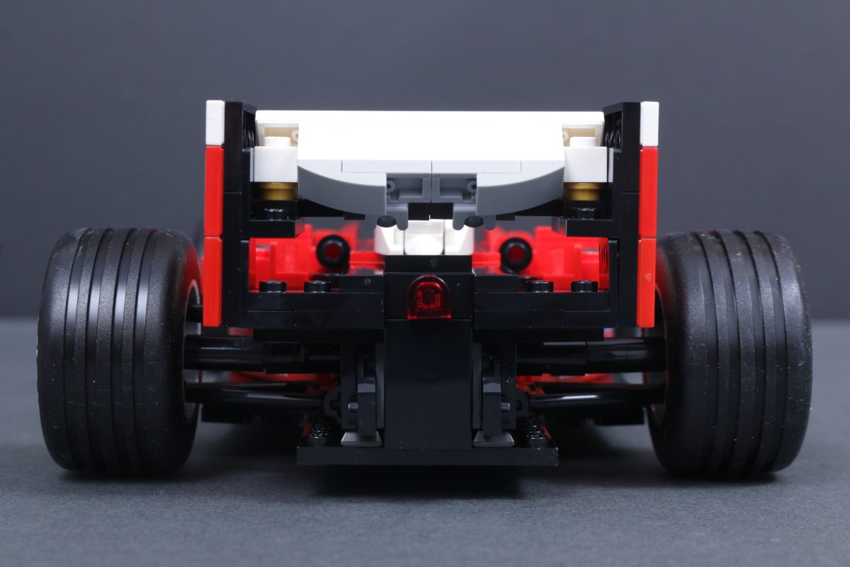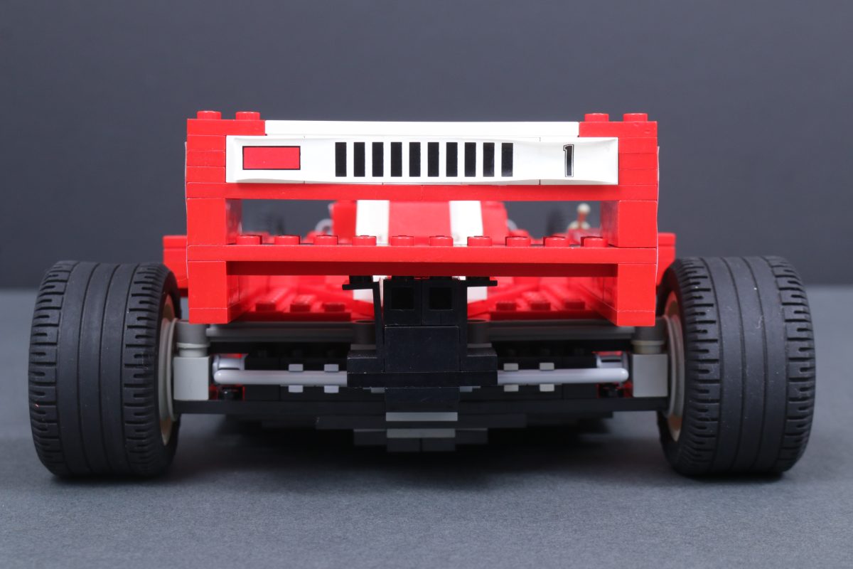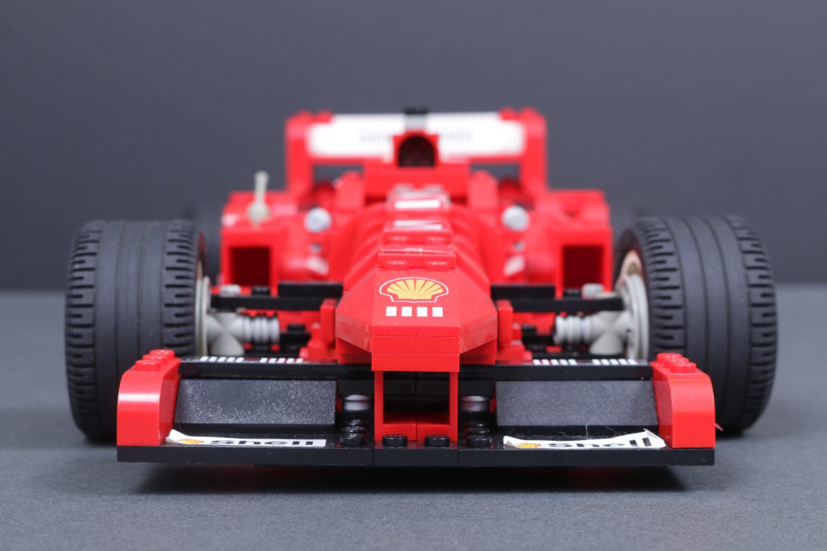 Trotz dieses demografischen Wandels für die LEGO Das Modell 2556 Ferrari Formel-1-Rennwagen zeichnet sich durch alle notwendigen Details und einige für die damalige Zeit innovative Bauenechniken aus, wie beispielsweise die Verwendung umgekehrter Schrägen, um Kurven so genau wie möglich darzustellen.