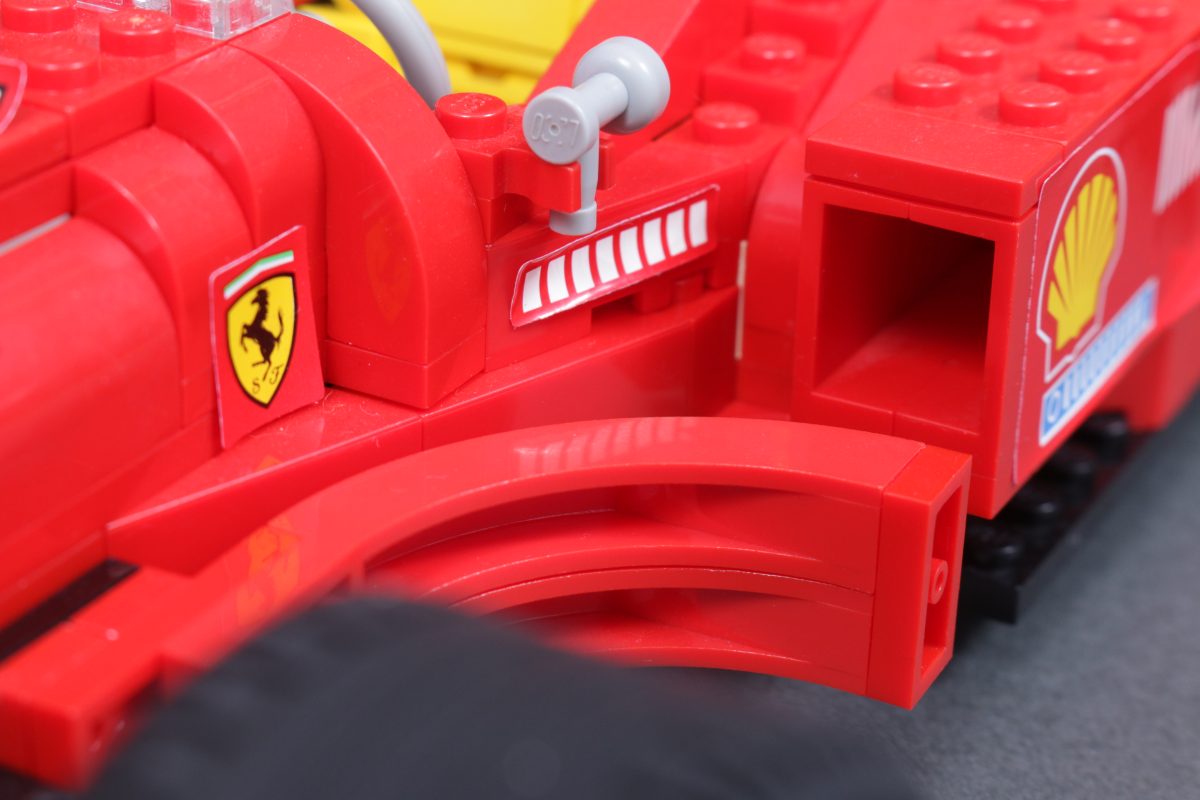 Dieses Muster setzt sich im gesamten Set von 2026 fort, das mit mehr Aufklebern versehen ist als das Set von 1998. Dies hängt damit zusammen, dass 11375 Ferrari F2004 & Michael Schumacher richtet sich an ein älteres Publikum, das einen höheren Detailgrad erwartet und zu schätzen weiß.