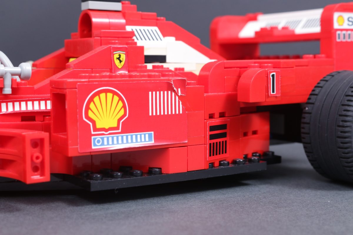 Beide Sets verwenden eine Mischung aus Aufklebern und Drucken, um die Lackierung darzustellen, aber das Set 2556 Ferrari Formel-1-Rennwagen enthält 30 Aufkleber und das Set 2556 sogar 40. 11375 Ferrari F2004 & Michael SchumacherFairerweise muss man aber sagen, dass mit den zusätzlichen zehn Aufklebern auch mehr Sponsoren und andere Details abgebildet werden. Man vergleiche nur mal die drei Aufkleber vorne links am Heckflügel des 1998er Modells mit den vier Aufklebern des 2026er Modells.