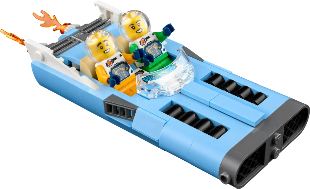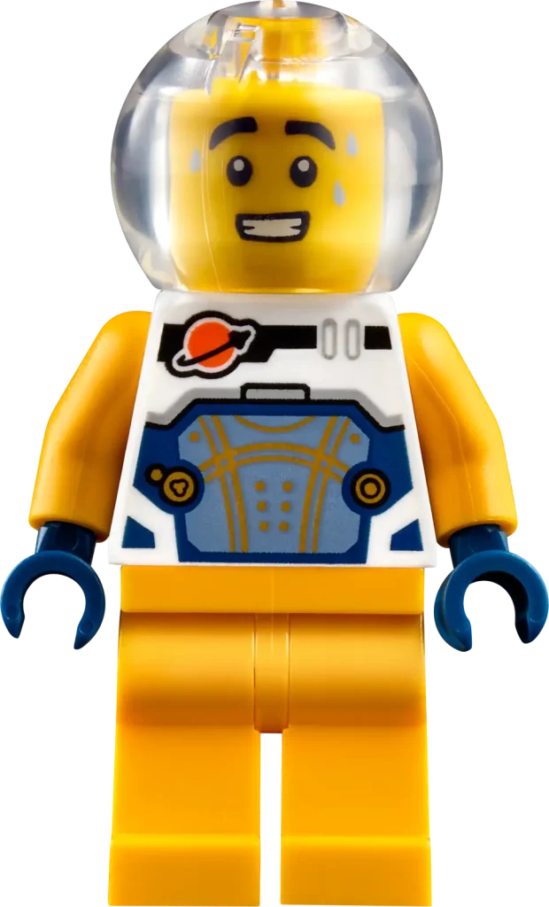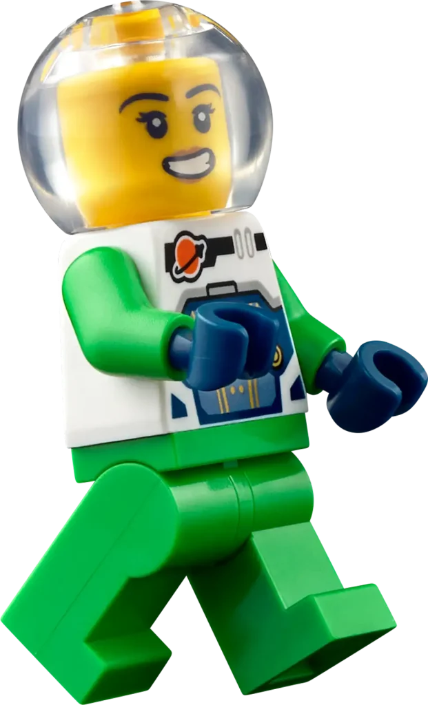 Außerdem sind zwei Raumfahrer-Minifiguren in Raumanzügen enthalten, die das Mondauto bemannen. Ein Schild weist den Weg zum Zielort des Mondfahrers. Das Fahrzeug selbst kann vom Sockel genommen und genauer betrachtet werden.