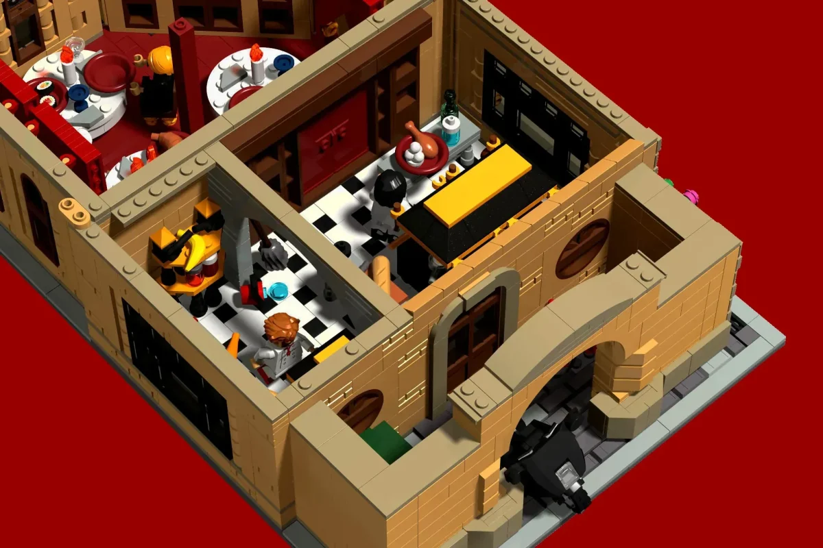 Fünf Minifiguren sind vorgesehen, darunter Linguini, Colette, Ego, Skinner sowie eine blaue Neuauflage des Ratten-/Maus-Elements von 2018 für Remy. Das Modell ließe sich leicht in ein modulares Straßensystem umbauen.