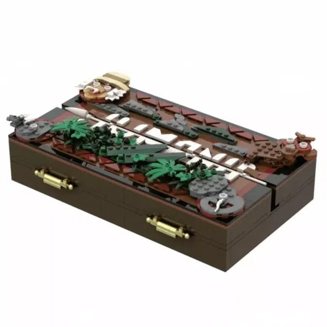 Die LEGO Ideas Das Modell besteht aus 1,423 Teilen und verfügt über eine zu öffnende Außenbox, auf deren Oberseite der Name des Spiels steht, sowie aus Steinen geBauene Bilder eines Elefanten, eines Nashorns, eines Affen, eines rauchenden Vulkans und des menschlichen Hauptgegners des Films, Van Pelt.