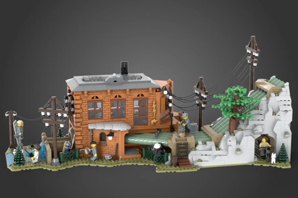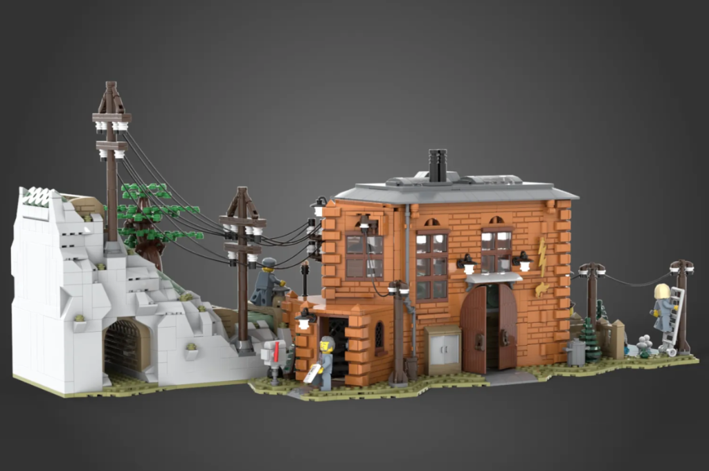Das von Fans gemachte LEGO Ideas Build soll eine Mischung aus älteren Architektur und moderne Technologie, verschmolzen mit einer Prise skurriler Momente. Das Wasserkraftwerk verfügt über eine Maschinenhalle mit zwei Turbinengeneratoren und einer klappbaren Rückwand, vier Wasserrohre mit Rückschlagventilen sowie drei große und drei kleine Strommasten.
