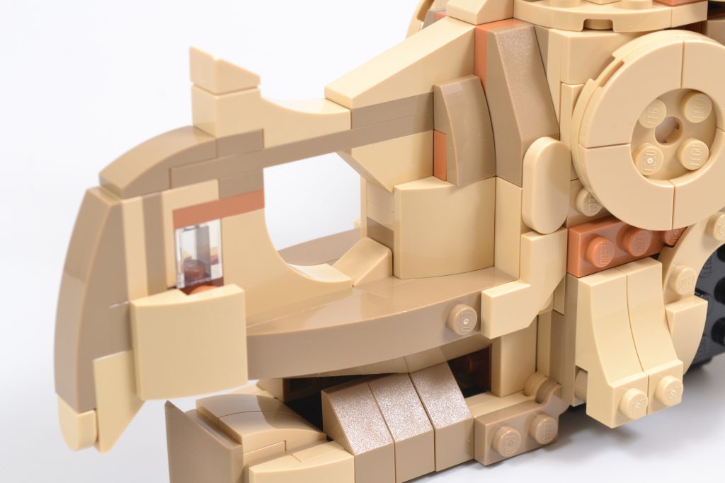 Ein besonderes Lob gebührt dem Bau von 76969 Dinosaurierfossilien: Triceratops-SchädelDer Halsreif ist zwar nicht ganz so groß wie der des echten Dinosauriers, verbindet jedoch flache hellbraune Platten mit einem stabilen Rahmen, wobei alles perfekt ineinandergreift und es keinerlei Wackeln oder Bewegungen gibt, über die man sich Sorgen machen müsste.