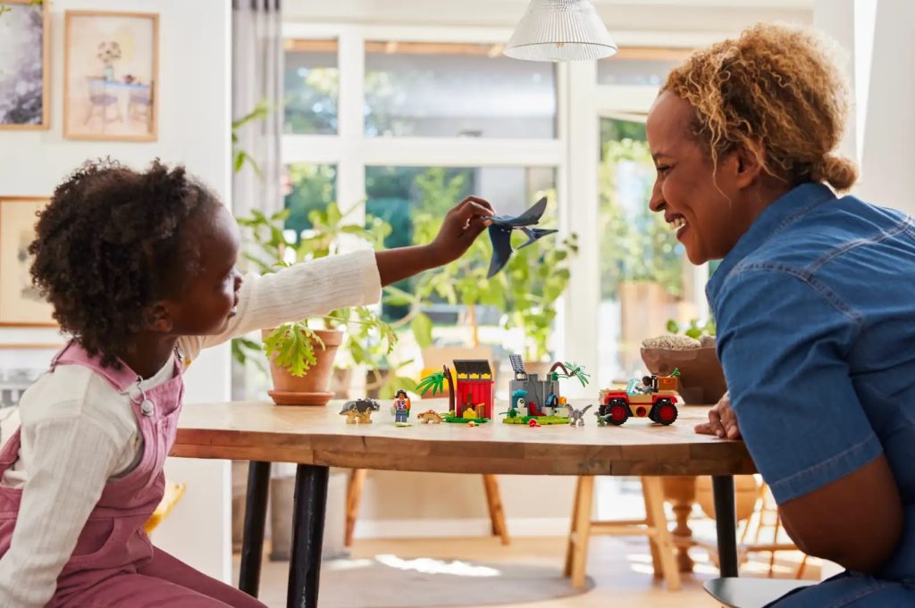 Was ist cooler als ein Dinosaurier? Ein Dinosaurierbaby! Die geringe Teileanzahl bedeutet, dass es hier nicht viele Bauelemente gibt, aber das 76963 Baby Dinosaur Rescue Centre beherbergt fünf Dinosaurier-Spielfiguren: einen Baby-Ankylosaurus, einen Triceratops und einen Velociraptor, einen kleinen Velociraptor und einen erwachsenen Pteranodon. Zusätzlich zu den Minifiguren von Darius und Sammy stehen dir zahlreiche Spielmöglichkeiten zur Verfügung.