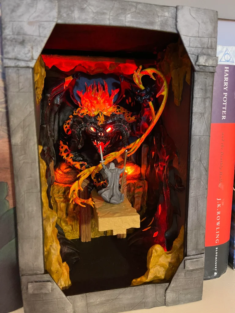 Der Gerüchte-Beitrag enthält ein Bild eines benutzerdefinierten The Herr der Ringe Book Nook entworfen von rocknroll auf Reddit, was eine Vorstellung davon bietet, was man von einem gemunkelten Set basierend auf dieser Szene erwarten kann. Sollte dieser Bericht zutreffen, werden wir einen weiteren aus Ziegeln geBauenen Balrog bekommen, der 40631 Gandalf der Graue & Balrog.