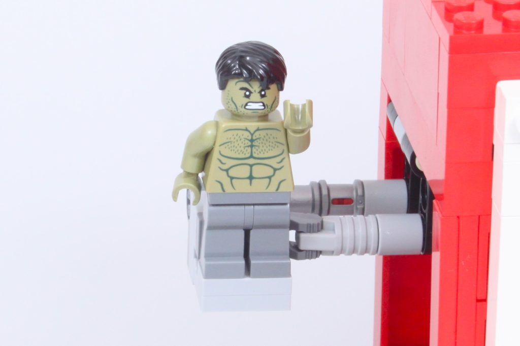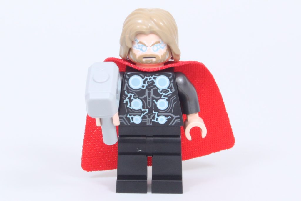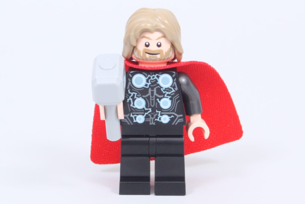 Thors mit Blitzen verziertes Outfit ist eine überraschende Neuerscheinung in der LEGO-Reihe. Marvel's Leben, aber es ist keineswegs eine unbeachtete Ergänzung. Hulks Minifigur ist eine lustige Version des normalerweise massiven Charakters (trotz der Tatsache, dass er Hosen statt Shorts trägt – doppelt geformte Beine hätten nicht geschadet) und Iron Mans Mark 6-Outfit ist unbeschädigt im Vergleich zu der beschädigten Version, die nur in der teuren 76269 Rächerturm.