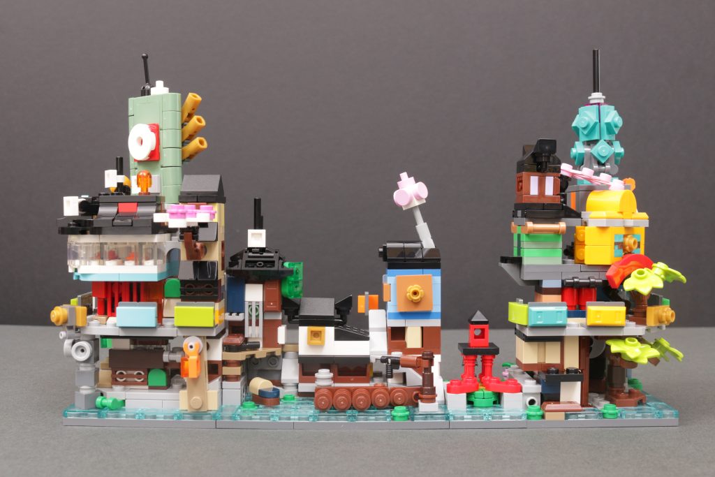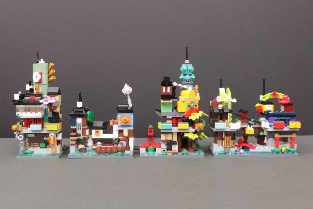 Und als Sammlung, 40703 Mikro-NINJAGO City, 40704 Micro NINJAGO Docks, 40705 Mikro NINJAGO City Gärten und 40706 Micro NINJAGO City Märkte lassen sich wirklich gut zu einem farbenfrohen, geschäftigen und interessanten Schauspiel zusammenstellen, das ihren viel größeren Gegenstücken würdig ist. Jeder einzelne ist sehr interessant und recht sorgfältig aufzubauen, wobei viele Details und Rückblicke auf die größeren Versionen in das Design eingearbeitet sind.