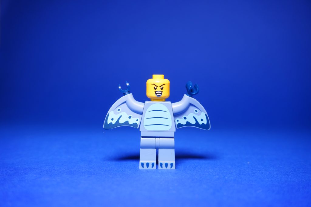 Der Pterodactyl-Kostümfächer ist ganz ordentlich und verfügt über ein individuelles Element für den Kopf des Kostüms sowie individuelle Arme und einen Aufdruck auf den Füßen, um die Klauen des Pterodactylus darzustellen. Obwohl dies bei Dinosaurierfans zweifellos beliebt sein wird, wirkt diese Minifigur im Vergleich zu einigen der aufwändigeren Angebote dieser Serie doch etwas einfach.