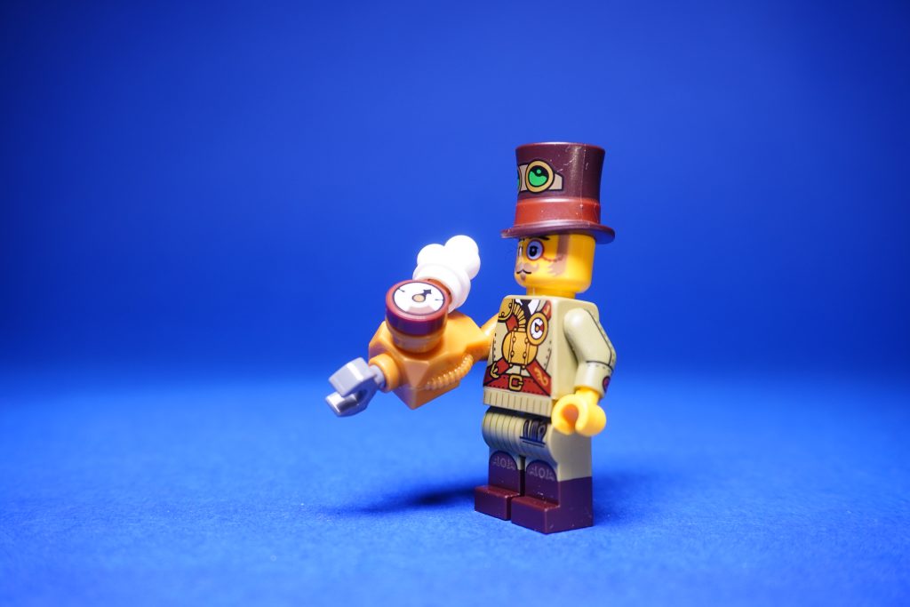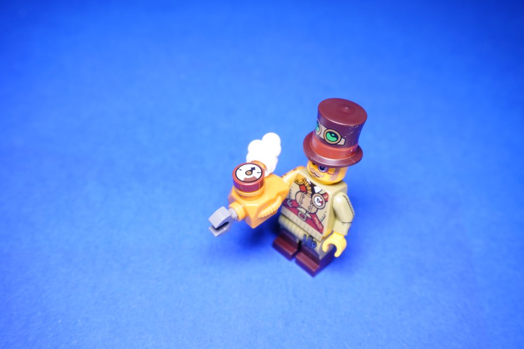 Während bei diesem Set die Hardware als erstes ins Auge fällt, gehört der Aufdruck dieser Minifigur zu den besten dieser Serie. Der Erfinder weist sowohl Arm- und Beinaufdrucke als auch einen Aufdruck auf seinem Zylinder auf. Der Detailgrad dieses Designs ist atemberaubend und einen genaueren Blick wert.