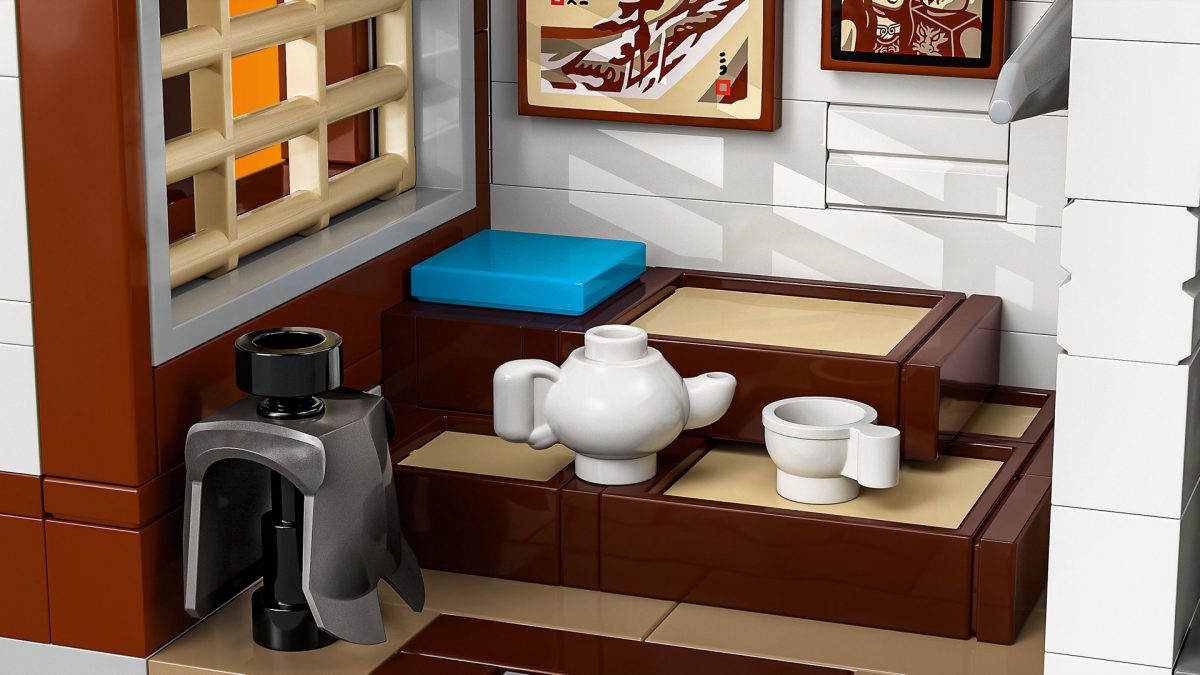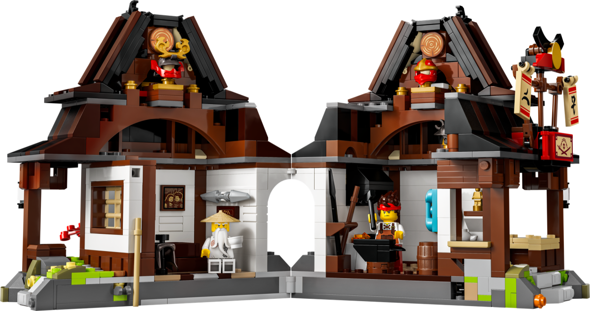 Das 1,259-teilige Set sieht nicht nur mit seinem dynamischen schwarzen Dach und den Scharnieren, die den Zugang zum Innenraum ermöglichen, richtig gut aus, sondern bietet auch verschiedene Spielfunktionen. NINJAGO Das Set enthält unter anderem Ninja-Aufkleber, die sich hinter abnehmbaren Helm- und Kapuzendisplays verbergen, sowie ein Schild, das sich herausdrücken lässt und die goldene Waffenkarte enthüllt. Auch die Schmiede selbst ist vollgepackt mit verschiedenen Anspielungen auf 15 Jahre NINJAGO.