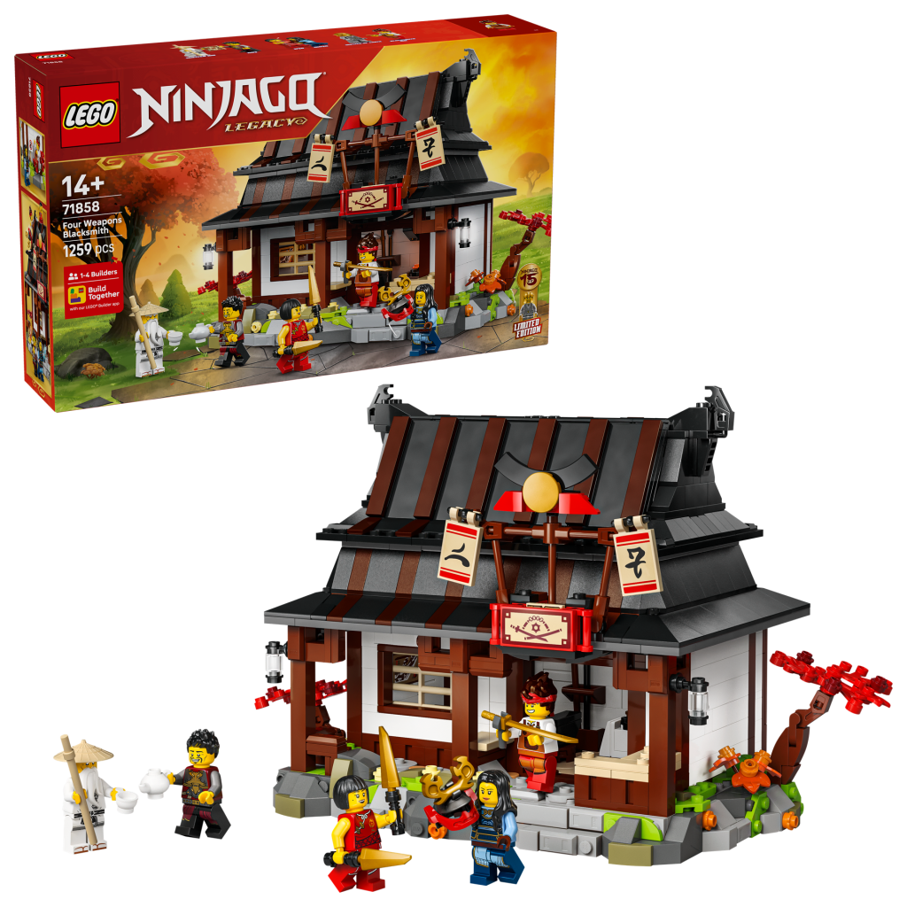 2026 wird LEGO NINJAGO Wir feiern 15 Jahre dieses Themas und starten mit der Veröffentlichung von [Name des Produkts] stark in das Jubiläumsjahr. 71858 Vier Waffen Schmied Am 1. Januar kehrt das Set an den ursprünglichen Drehort der Pilotfolge zurück. LEGO NINJAGO Fernsehsendung, die der Geschichte des Themas Tribut zollt.
