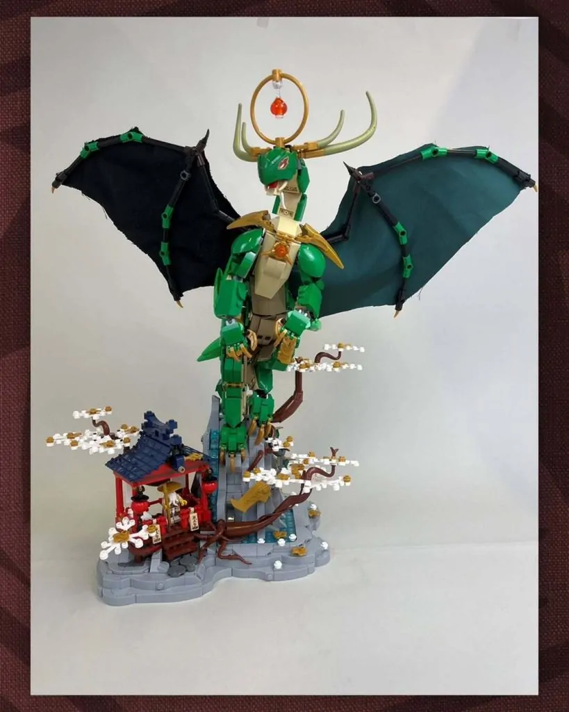 Konzeptbilder zeigen, dass Berg und Schrein zu größeren Versionen beider Bauenen erweitert wurden, inklusive mehr Laub und dem deutlichen Fehlen der geschwungenen schwarzen Basis, die beide Monstrosity-Sets verwenden. Das endgültige Design verkleinerte beide Aspekte des Sets und konzentrierte sich fast ausschließlich auf den riesigen Drachen.