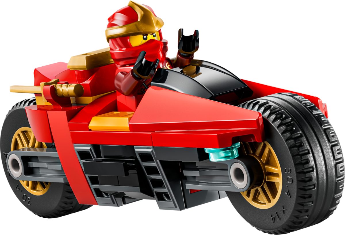 Das 691-teilige Set zeigt Kais Fahrzeug aus „Rebooted“ und verfügt über die gleiche Motorrad-Startfunktion. Die Minifigurenauswahl umfasst drei Charaktere. Kais Jubiläumsoutfit ist in diesem Set ausnahmsweise enthalten, während General Cryptor mit der gleichen markanten Kopfbedeckung neu aufgelegt wird, die er ursprünglich trug.
