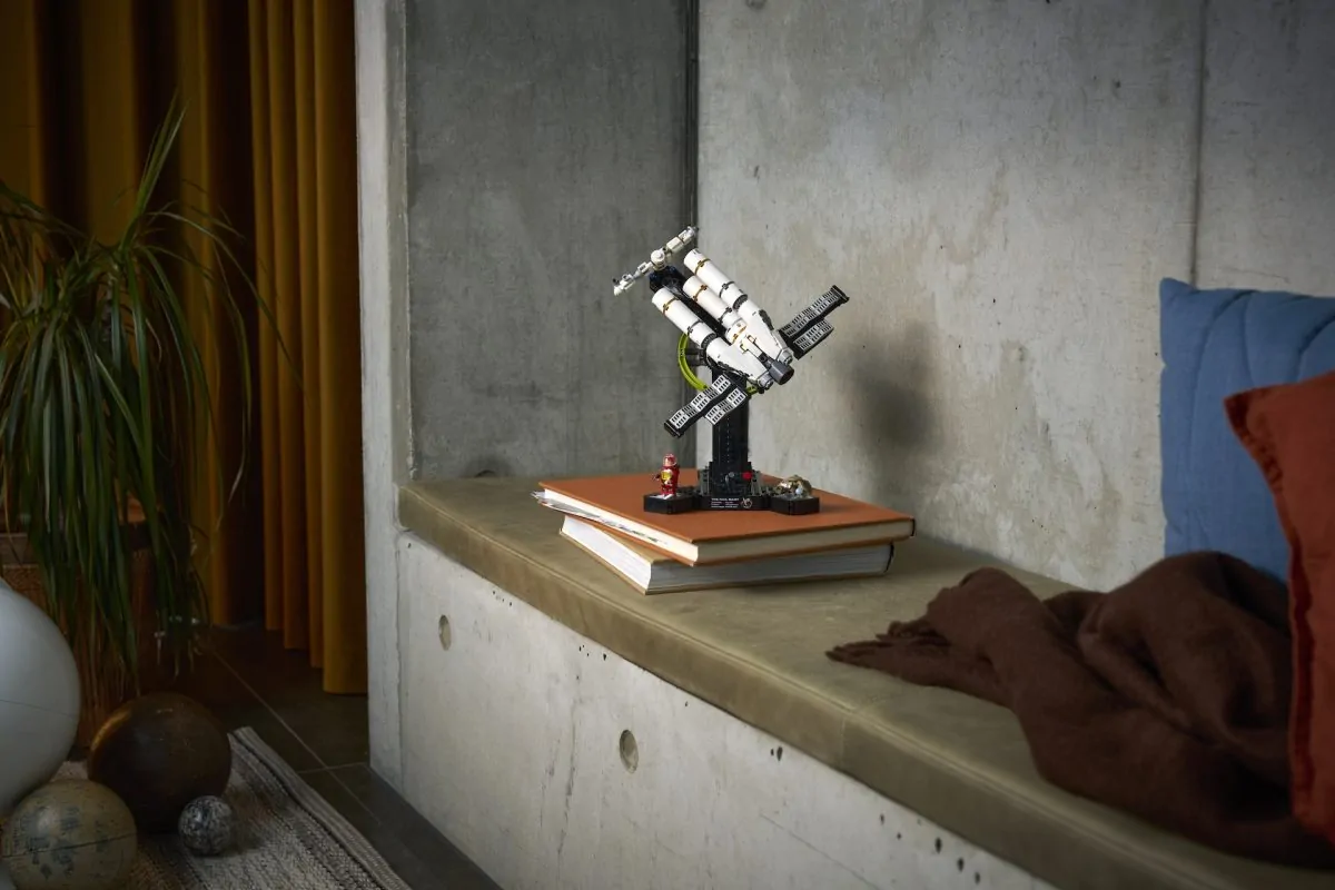 Der Großteil des Sets konzentriert sich auf das interstellare Raumschiff „Project Hail Mary“ mit seinem Zentrifugalkraftsystem. Ein kleines Spielelement ermöglicht es, das Besatzungsmodul per Kurbel in den Orbit zu befördern. Das Set ist jedoch hauptsächlich für die Vitrine gedacht und benötigt daher nicht viel Platz im Regal: Das fertige Modell ist 30 cm hoch und 22 cm breit.