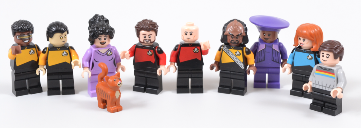 Werfen Sie einen genaueren Blick auf die beeindruckende Aufstellung von LEGO Star Trek Minifiguren, die an Bord gebeamt wurden 10356 USS Enterprise NCC-1701-D.