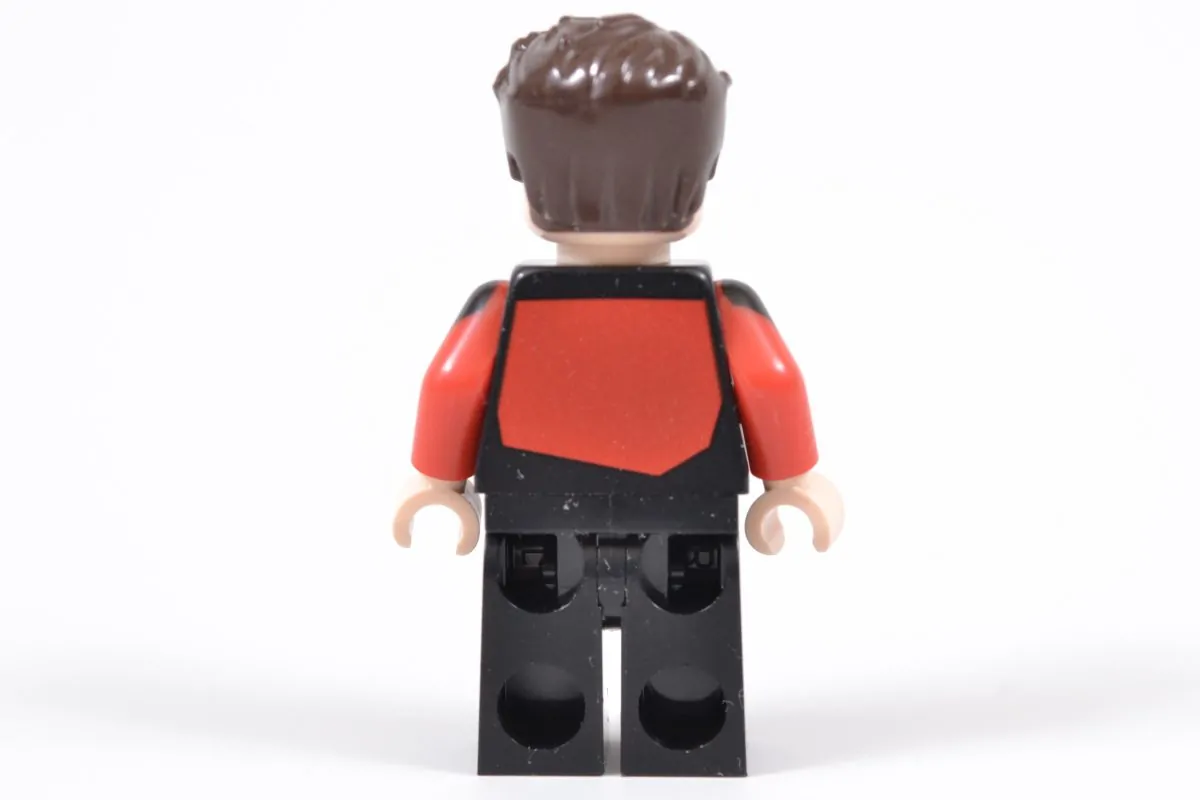 Der Kommandant der USS Enterprise NCC-1701-D sieht in seiner Sternenflottenuniform aus Staffel 3 einfach umwerfend aus. Sie ist komplett mit V-Ausschnitt und Kommunikationsabzeichen auf der Brust, Vorder- und Rückseite des Oberkörpers sind bedruckt, ebenso die Arme. Eine Tasse Earl Grey Tee, heiß, rundet das Bild ab. Die einzigen kleinen Kritikpunkte an der Minifigur sind, dass die Haare am Hinterkopf nicht aufgedruckt sind und der Rotton des Oberkörpers nicht ganz mit dem der Arme übereinstimmt.