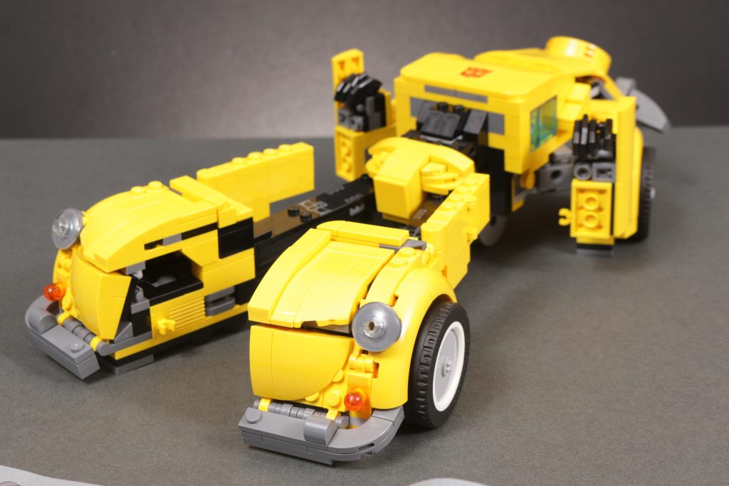 Der Transformationsprozess – und die Tatsache, dass an beiden Enden zwei glaubwürdige Modelle stehen – zeugt weiterhin von einem guten Verständnis des LEGO-Mediums. aus technischer Sicht Aus ästhetischer Sicht, und obwohl die meisten von uns Bumblebee wahrscheinlich im Robotermodus belassen werden, ist die Möglichkeit, auf das gelbe, käferartige Auto umzuschalten, unglaublich unterhaltsam. Außerdem macht es Spaß, es selbst auszuprobieren und vor allem, weil es Ihnen vielleicht die Augen für die verschiedenen Funktionsweisen von LEGO-Steinen öffnet.