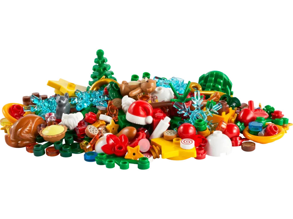 40609 Weihnachtsspaß-Zusatzpaketist die erste weihnachtliche Wundertüte mit verschiedenen LEGO Elementen (das letztjährige VIP-Zusatzpaket „Winterwunderland“ 40514 war eher weihnachtlich als festlich). Freut euch auf Weihnachtsmannmützen, Weihnachtsbäume, Kekse, Bärte, einen Truthahn, Sterne, Teddybären und vieles mehr. Um dieses Paket zu erhalten, müsst ihr beim LEGO Insiders Programm (ehemals LEGO VIP) angemeldet sein.