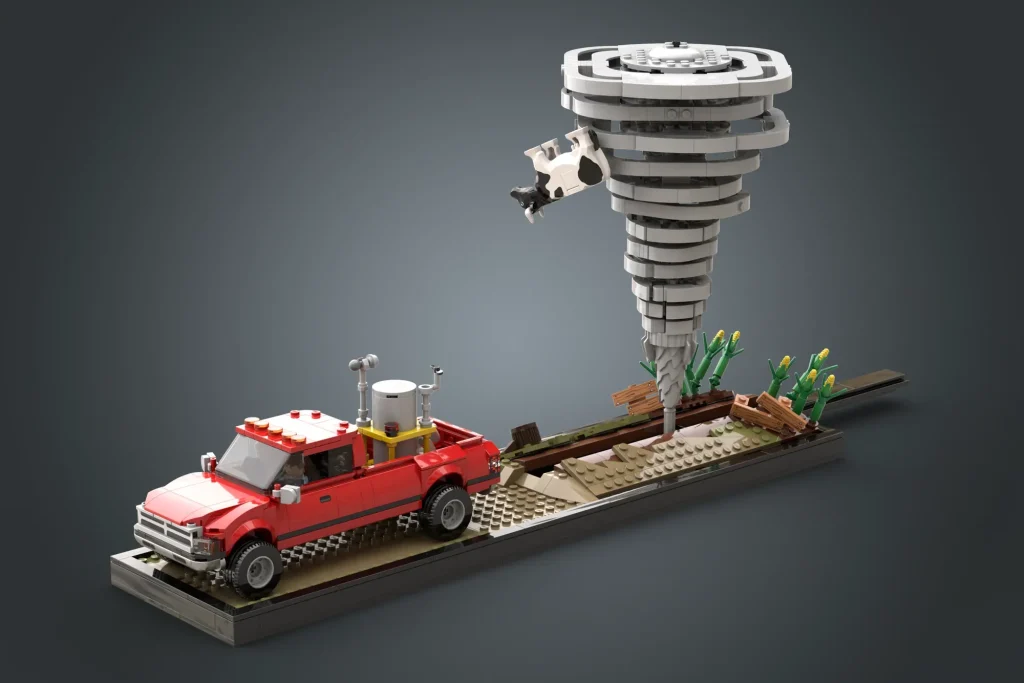 Eine Ode an den Katastrophenfilm Twister aus den 90ern hat 10,000 Anhänger auf LEGO Ideasund entfacht mit seinem funktionalen Tornado-Aufbau einen Sturm.