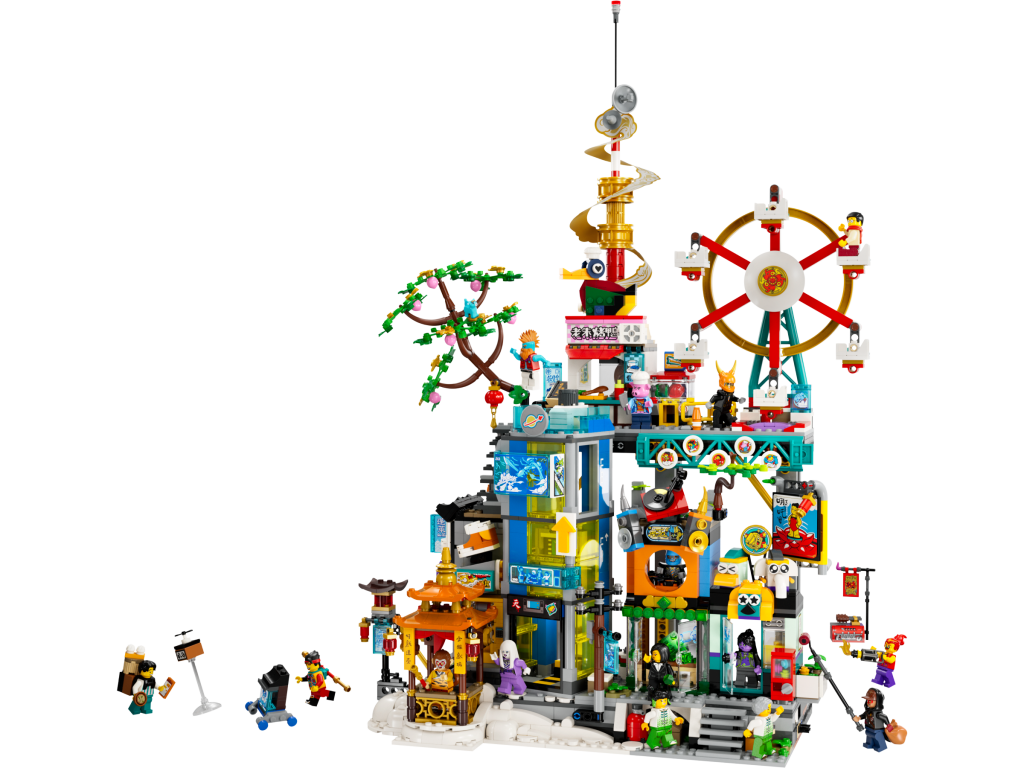 80054 Megapolis City 5th Anniversary erscheint am 1. Januar 2024 für 159.99 £ / 189.99 $ / 179.99 €. Es kombiniert mit 80036 The City von Laternen und 80044 Monkie Kid's Team-Versteck Auch.