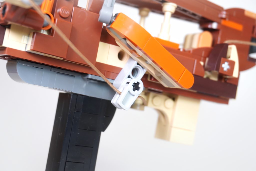 An den beweglichen Teilen dieses Sets ist an sich nichts auszusetzen, es ist nur so, dass sich alles ein wenig schwer anfühlt. In der Bedienungsanleitung wird ausdrücklich darauf hingewiesen, wie schwierig es war, eine Möglichkeit zu finden, die Flügel zu bewegen, ohne die Ästhetik des Sets zu beeinträchtigen, und die Lösung – ein bewegliches Teil am Bauch der Flugmaschine – funktioniert sehr gut.