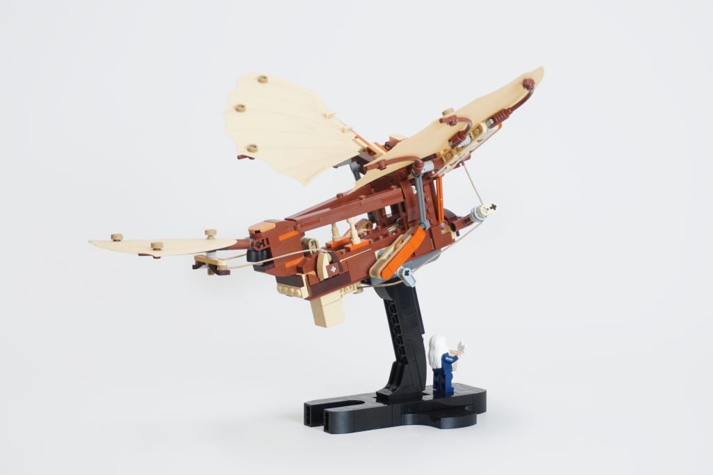 Die Herausforderung bei einer Adaption dieser Art besteht darin, dass das Ausgangsmaterial sowohl umfangreich als auch etwas veraltet ist. Bei einem Set wie diesem muss man sich gewisse Freiheiten nehmen, einfach weil uns von da Vincis Arbeit an einer Flugmaschine nur seine Skizzen geblieben sind. Daher ist dieses Set sowohl eine Adaption der vielen Interpretationen dieser Originalentwürfe durch die Popkultur als auch der Skizzen, die da Vinci selbst angefertigt hat.