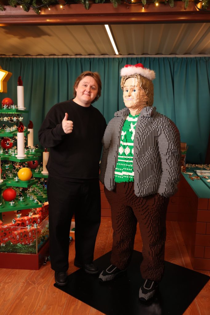 Sängerin und selbsternannte LEGO Fan Lewis Capaldi stand einer aus Ziegelsteinen geBauenen Version von sich selbst gegenüber in London's Chalet des Spiels.