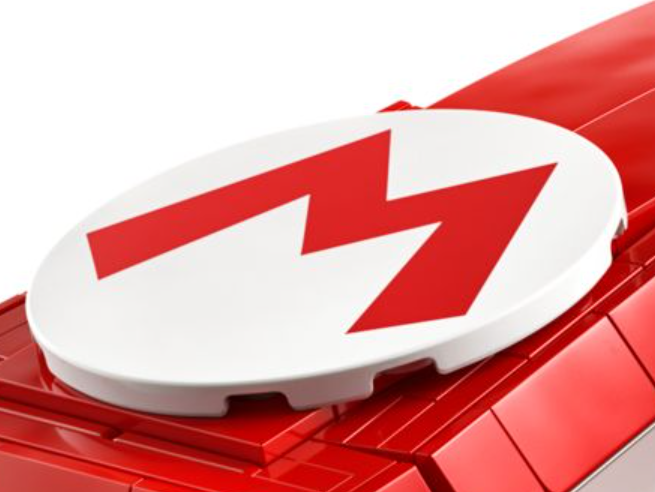 Ein weniger spezifisches Stück, das in 72037 Mario & Standard Kart ist eine neue runde Kachel im Format sechs mal sechs mit Marios charakteristischem Emblem. Dies ist bei weitem die größte runde Kachel, die jemals entworfen wurde, und es wird für Designer nicht annähernd so schwierig sein, andere Verwendungsmöglichkeiten für sie zu finden wie für die beiden anderen neuen Teile in diesem Set.