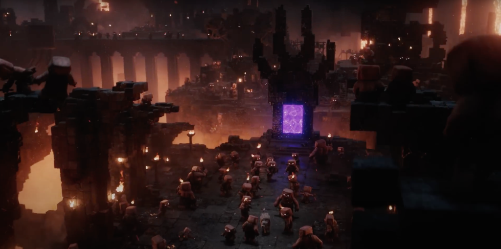 Der erste Trailer zu „A Minecraft Movie“ bietet jedoch einige interessante Möglichkeiten für solche potenziellen Modelle. Zunächst einmal gibt es einen zweiteiligen leuchtend blauen Würfel, den Steve offenbar benutzt, um in die Oberwelt zu gelangen. Er kommt aus einer Variante eines Netherportals.