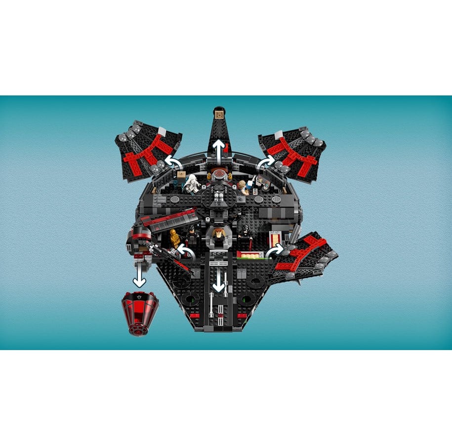 Diese Bilder geben uns einen viel genaueren Blick auf das Innere von 75389 Der Dunkle Falke, die den wichtigsten Ausgangspunkt zu bieten scheint von 75257 Millennium Falke (über das Farbschema des neuen Sets hinaus). Neben den Schlafquartieren für die Crew gibt es einen Thron für Darth Jar Jar, eine Gefängniszelle (und ein Surfbrett) für Beach Luke Skywalker und sogar einen Spielbereich mit Fernseher und Konsole.
