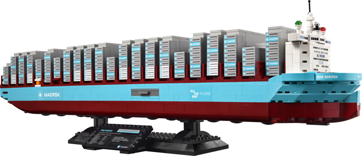 Last but not least nicht 40955 Maersk Dual-Fuel-Containerschiff wurde heute früher enthüllt In all seiner winzigen, bedruckten Behälterpracht. Nach unserer groben Zählung sind auf den Produktbildern 180 Stück zu sehen, daher dürften diejenigen, die das aus Ziegelsteinen geBauene Maersk-Denkmal abholen möchten, mindestens Dutzende von Schritten wiederholen müssen.