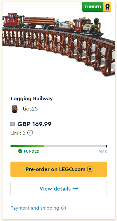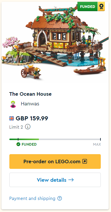 Von den drei verbleibenden Bauwerke empfehlen wir, ein Auge darauf zu werfen: Unheilvolle Insel Die Finanzierung ist bereits zur Hälfte abgeschlossen, aber seien Sie versichert, dass aus allen drei verbleibenden Modellen Sets zusammengestellt werden, sobald sie den anfänglichen Schwellenwert erreicht haben.