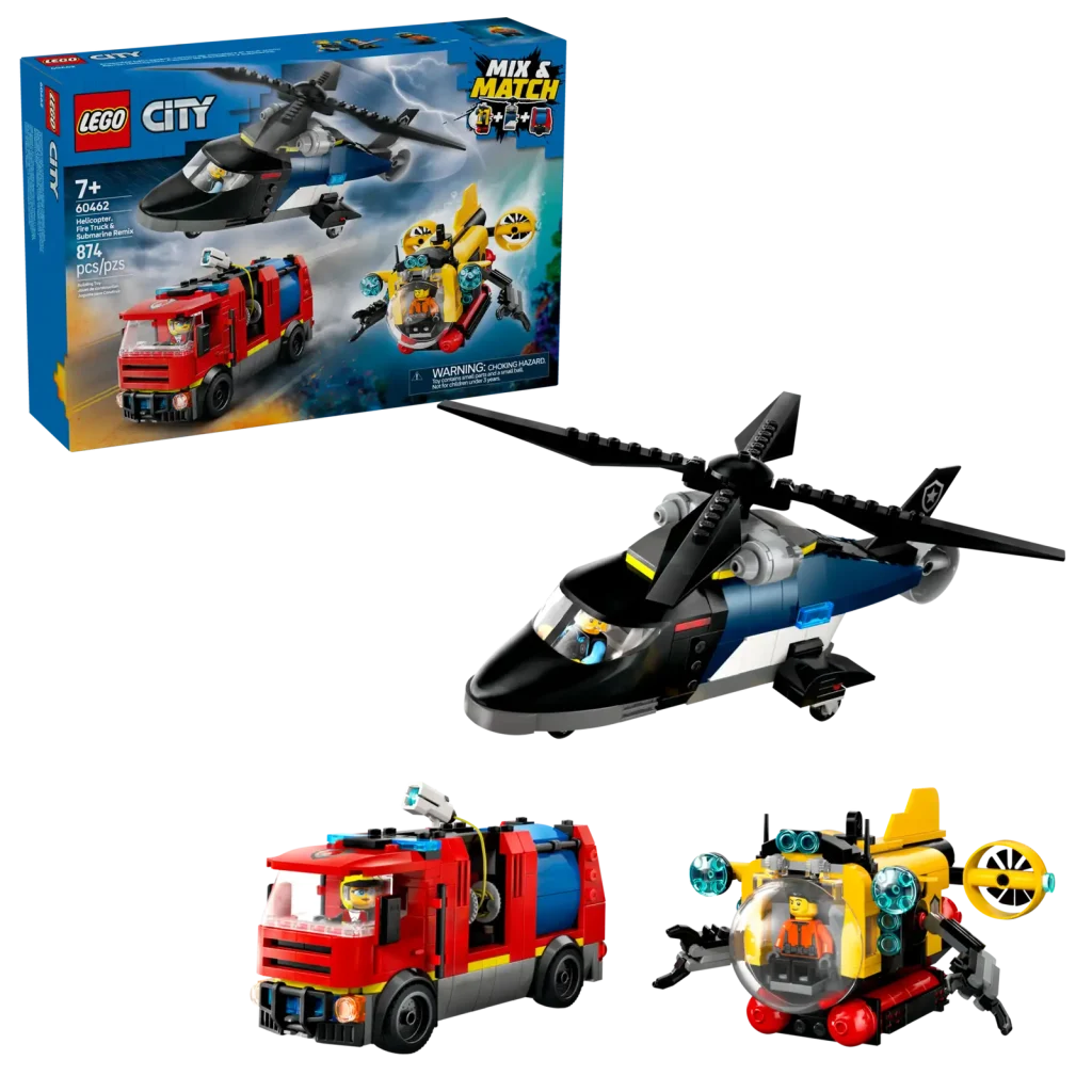 | 60462 Hubschrauber, Feuerwehrauto & U-Boot Remix | £ 54.99 / $ 59.99 / € 59.99 | 874 | 1. Januar 2025 |